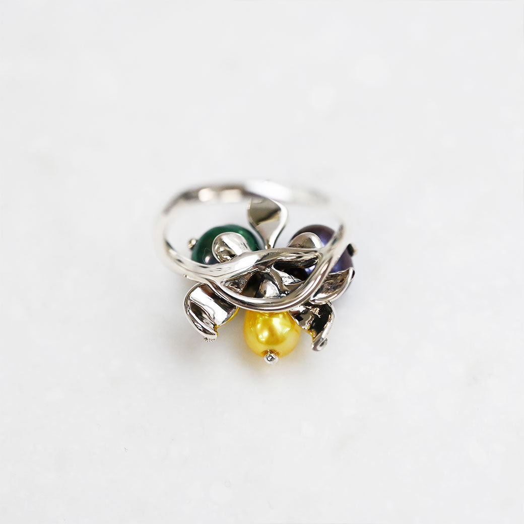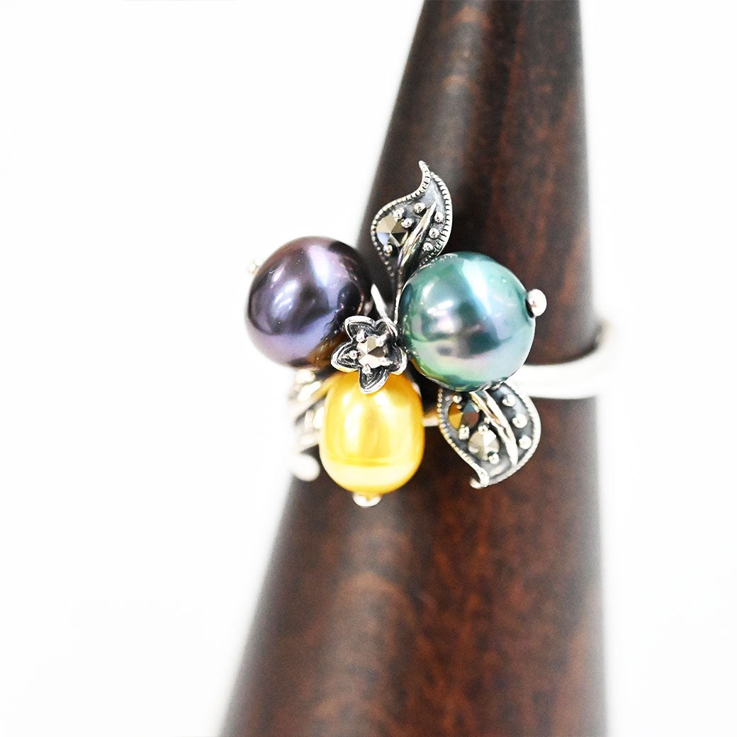 【Made in Japan】【数量限定】三色珍珠葉子戒指
