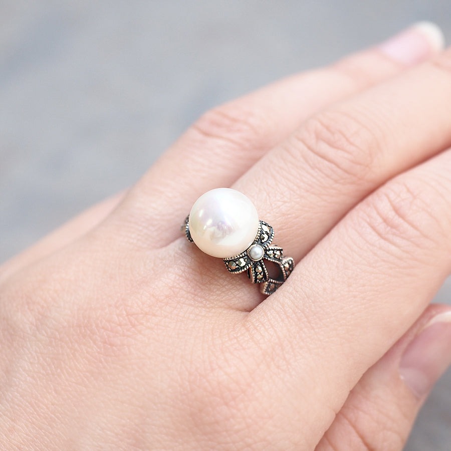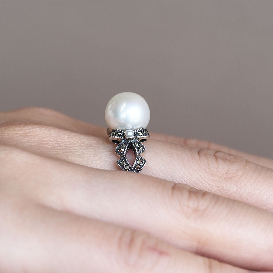 「馬克閃貴,珍珠圓滿」 您手上呢枚 925銀 + 馬克賽石 + 天然珍珠 蝴蝶結戒,五行金生水,主打 招財納福、感情圓滿、貴人加持、氣場溫潤、事業順遂 💖 Art Deco 復古風:馬克賽石鏤空蝴蝶結(閃耀貴氣)+雙珍珠主石(聚福圓滿)+銀雕花紋,象徵「馬克吸財+珍珠多福+銀生輝」! 單用戒指:食指/中指/無名指,一戒三戴! 無需開光,心誠則靈!即刻睇您嘅生肖可唔可以戴~
