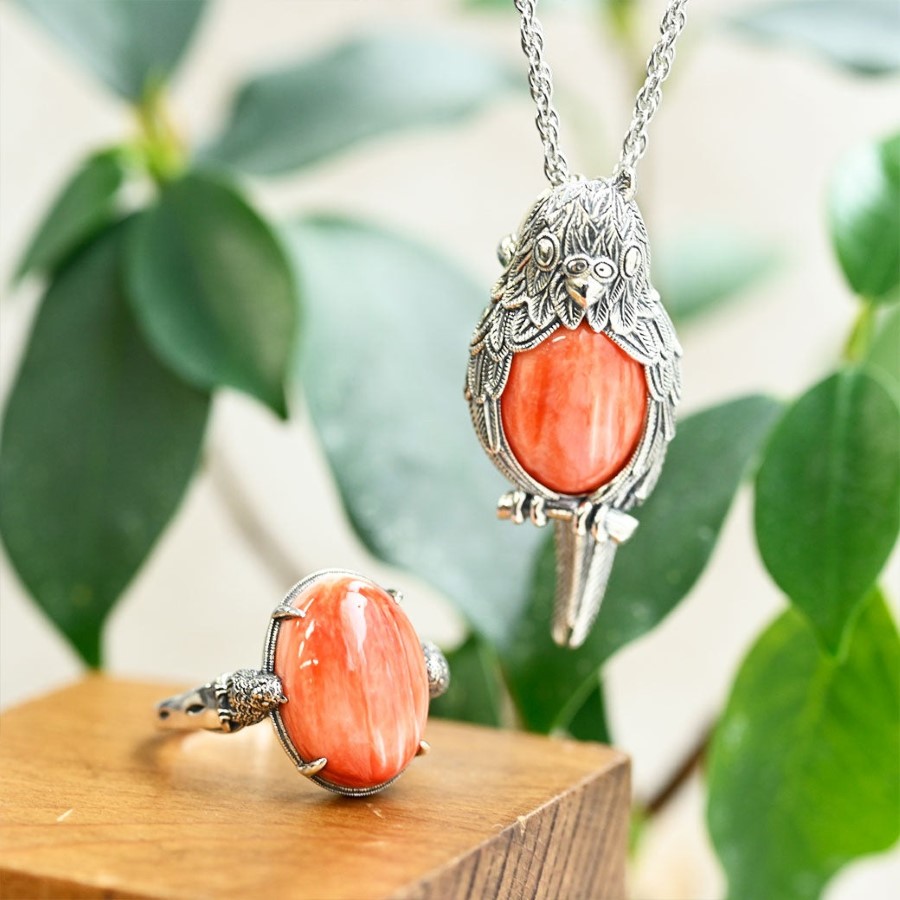 💍 2025-2026 銀飾運勢指南|紅色尖刺貝復古鳥吊墜 + 戒指套裝