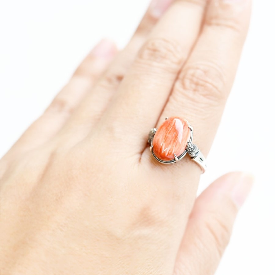 鮮艷嘅紅色刺殼上,可愛地點綴住兩隻細細嘅鸚鵡,呢款係帶來好運嘅主題戒指。呢個設計讓你可以盡情欣賞作為珠寶嘅美感。紅色刺殼嘅魅力紅色刺殼以鮮明嘅色彩配白色點綴為特徵,帶出大自然嘅美麗,亦係印度珠寶中深受喜愛嘅元素。鸚鵡嘅幸運象徵象徵智慧同深情嘅鸚鵡,在好多文化中都被視為幸運同長壽嘅象徵,帶有正面嘅意義。營造華麗造型係正式派對或社交活動嘅必備單品,其鮮艷嘅色彩喺手上散發存在感,為特別嘅日子增添華麗同個性。