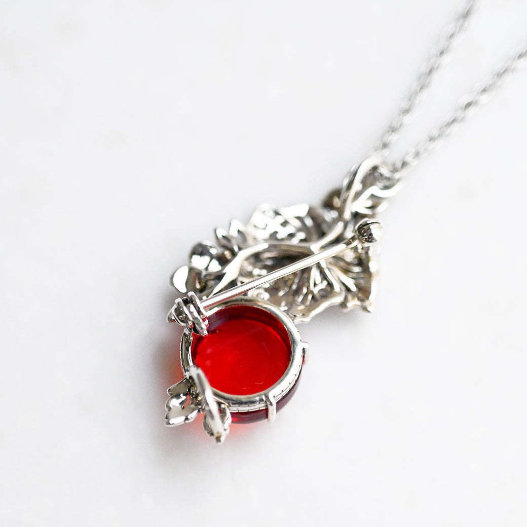【Made in Japan】紅琥珀 木槿花 吊墜胸針