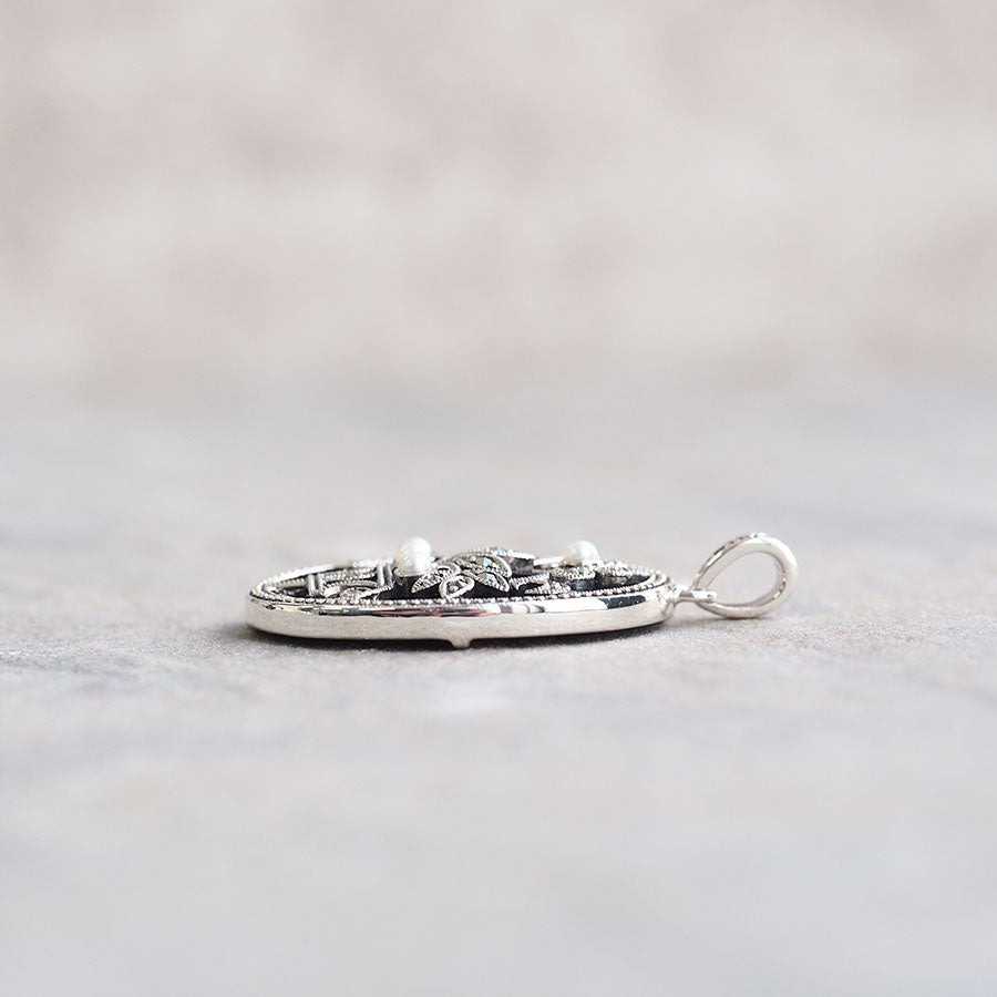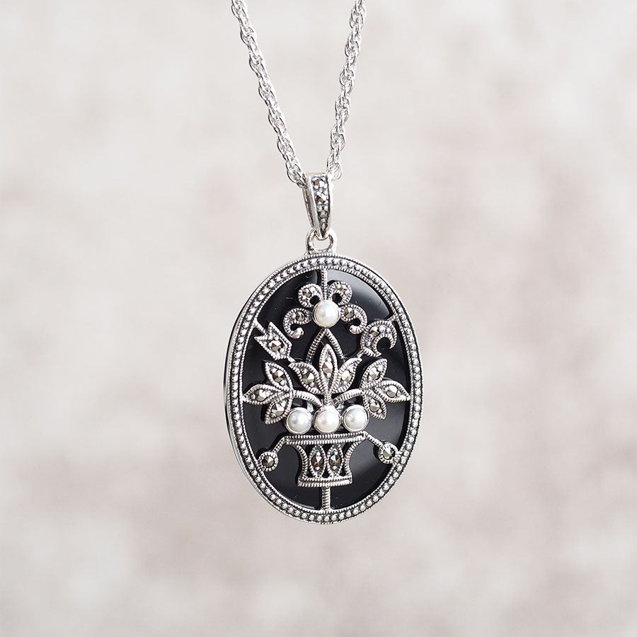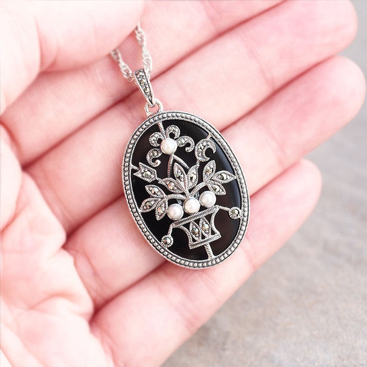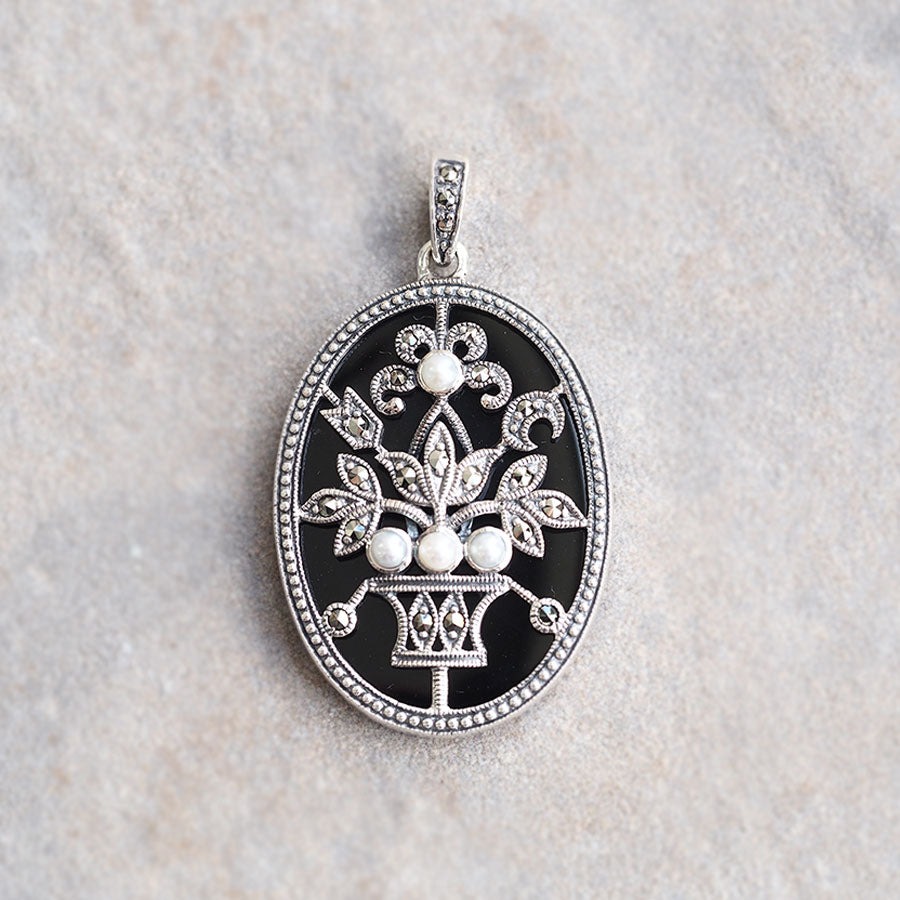 (925銀 + 黑瑪瑙 + 馬克賽石 + 珍珠|復古花瓶吊墜)