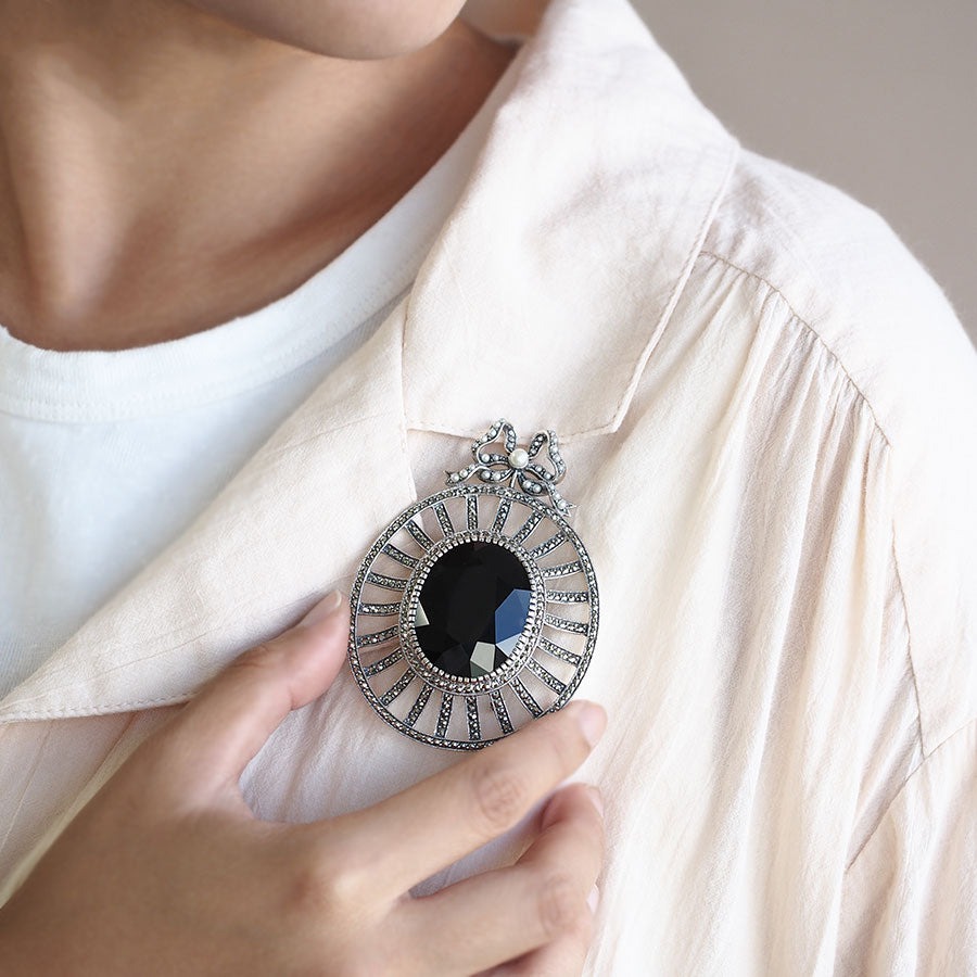 ✝️ 2025-2026 銀飾運勢指南|黑縞瑪瑙蝴蝶結珍珠復古胸針