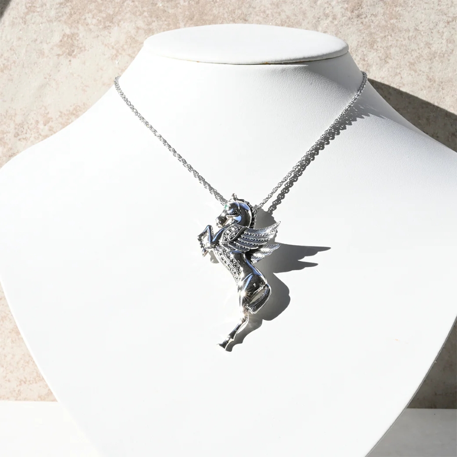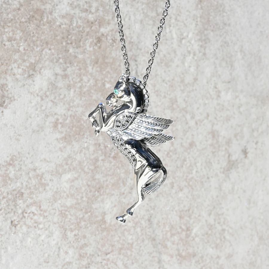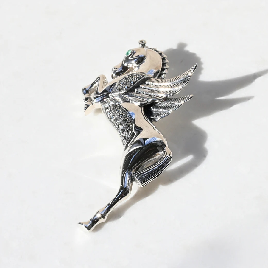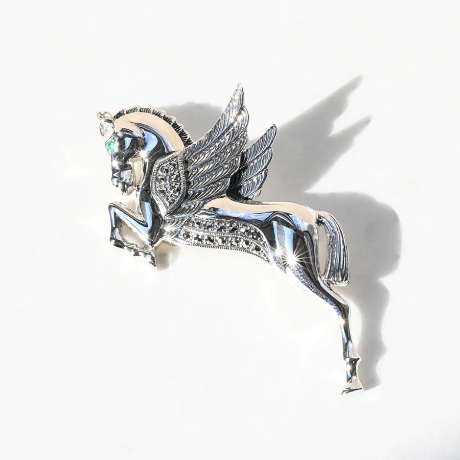 以傳說中能翱翔天空嘅飛馬〈飛馬〉為設計主題製成嘅銀925胸針。