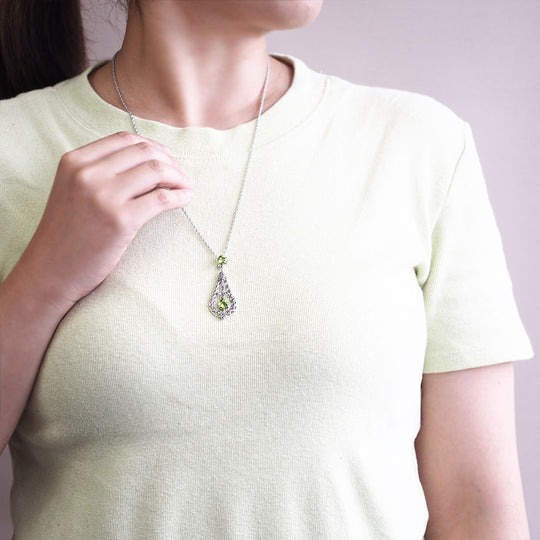 吊墜頂部嵌了一顆大顆的橄欖石。