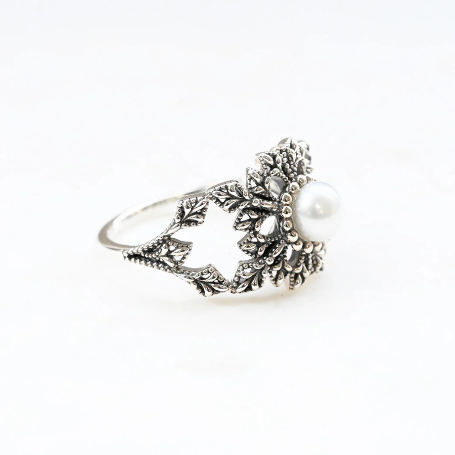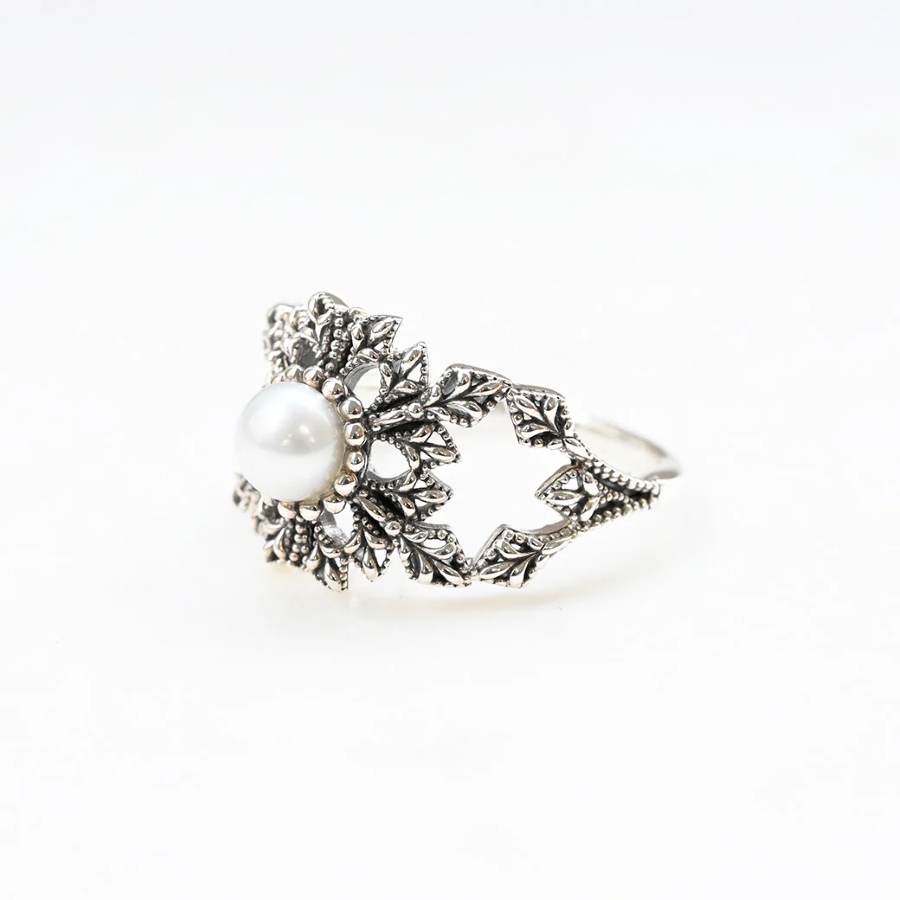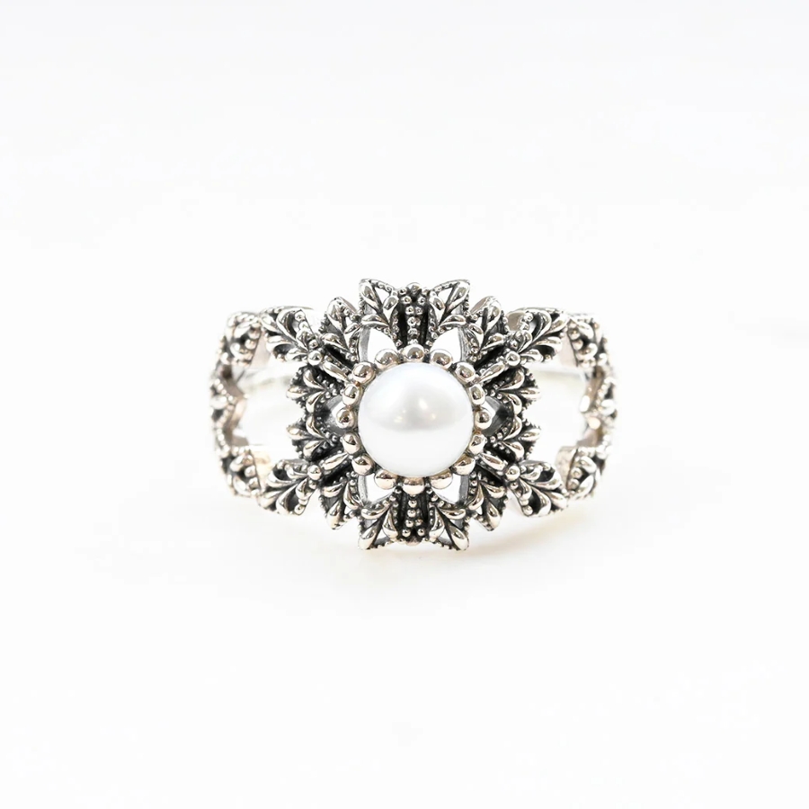 中央的珍珠閃耀光芒,為穿搭增添高雅氣息。大自然造就的造型突顯出高貴的美感。