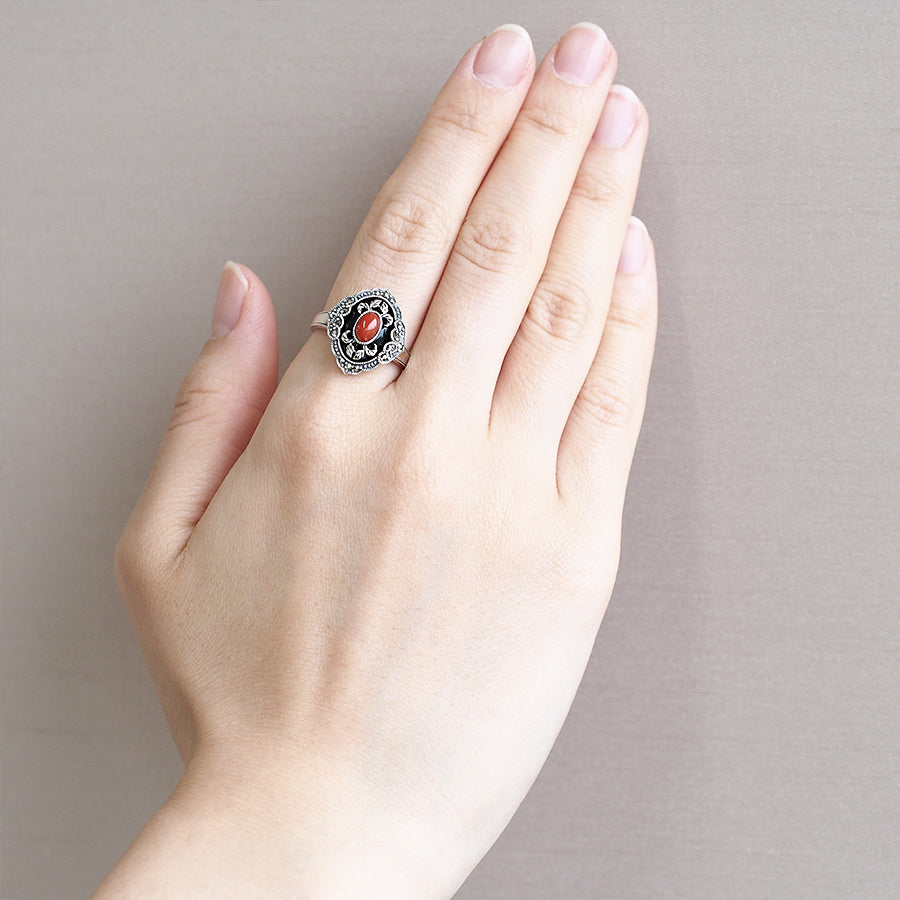 【Made in Japan】 SV系列 珊瑚&縞瑪瑙 中式趣味美術風格 戒指