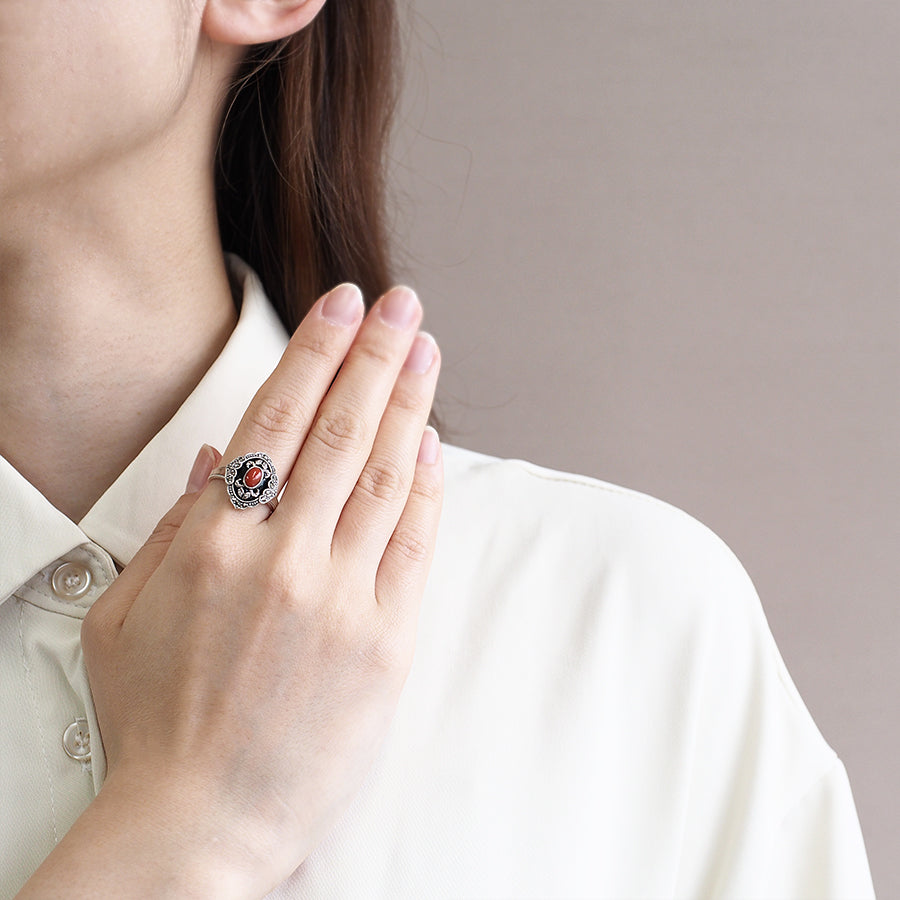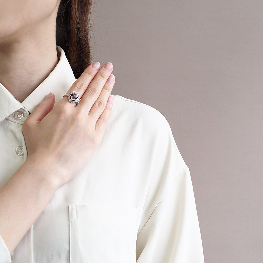 【Made in Japan】 SV系列 珊瑚&縞瑪瑙 中式趣味美術風格 戒指