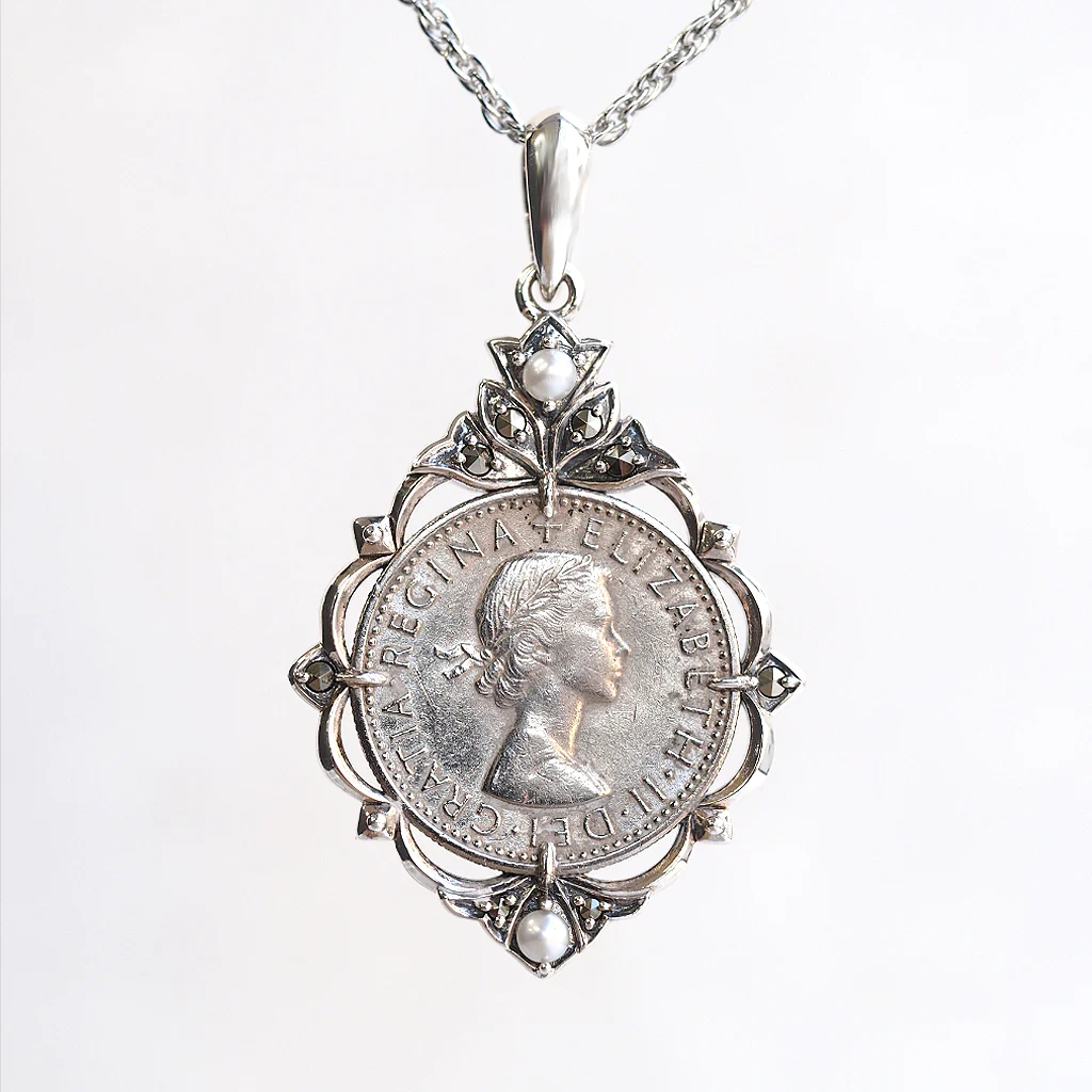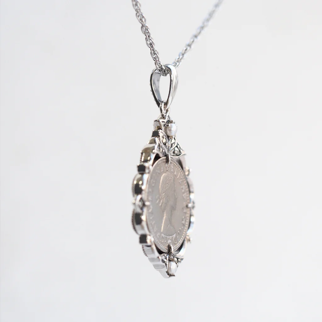 【Made in Japan】 SV系列 珍珠與馬克賽特 幸運的六便士硬幣 吊墜