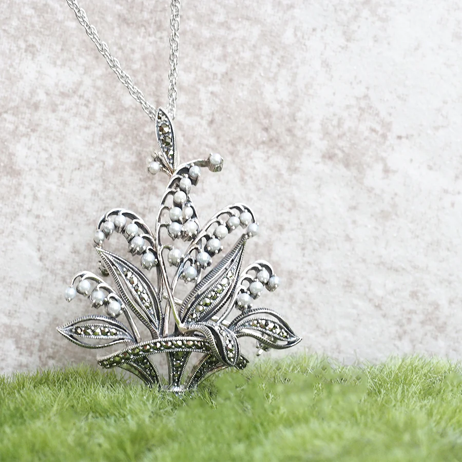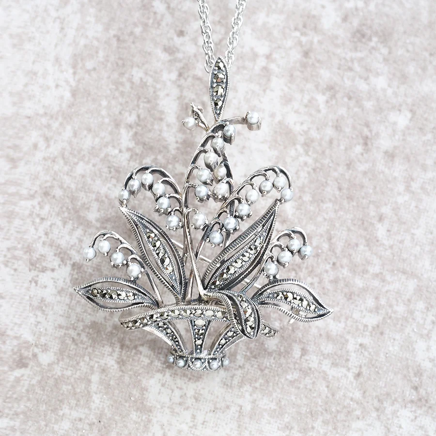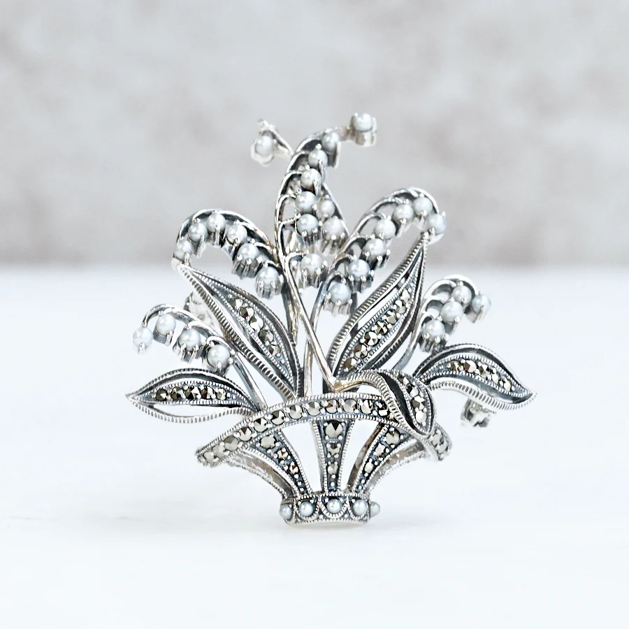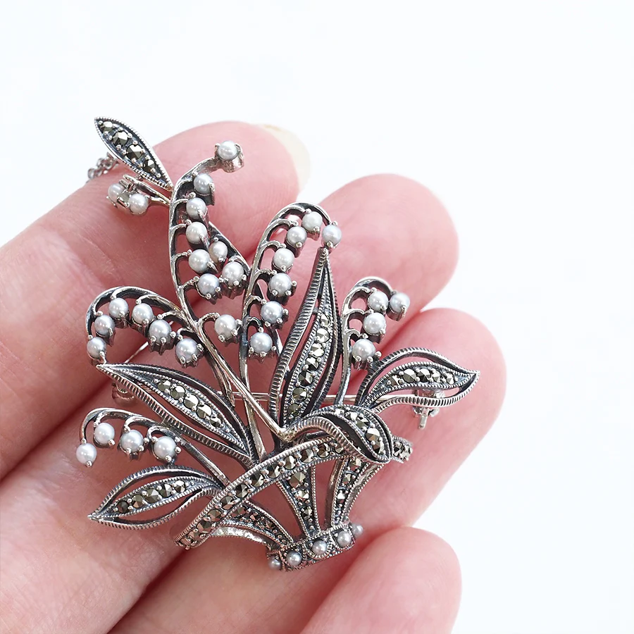 由好多小珍珠組成,打造成鈴蘭花形狀嘅華麗吊墜胸針。 花部份嘅小珍珠華麗閃亮,而葉同花盆上點綴嘅馬爾卡賽石會隨住動作發出內斂嘅光芒。 鈴蘭嘅花語「幸福嘅到來」「純潔」 呢件作品好似可以喺人生嘅重要時刻或者出街時,為你帶嚟幸福。 商品管理番号 204C0041 サイズ 約46×40mm 素材 SV925 Marcasite、Pearl 注意事項 ※請注意,由於使用天然石材,因此可能存在個體差異、天然裂縫和內含物,並且實際天然石材的顏色可能會因瀏覽器而異。 ※不含鏈條。 請按讚:喜歡 正在載入...