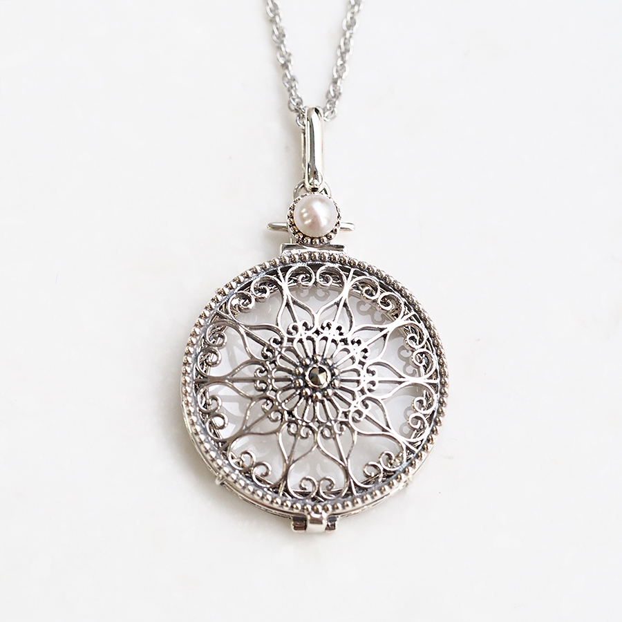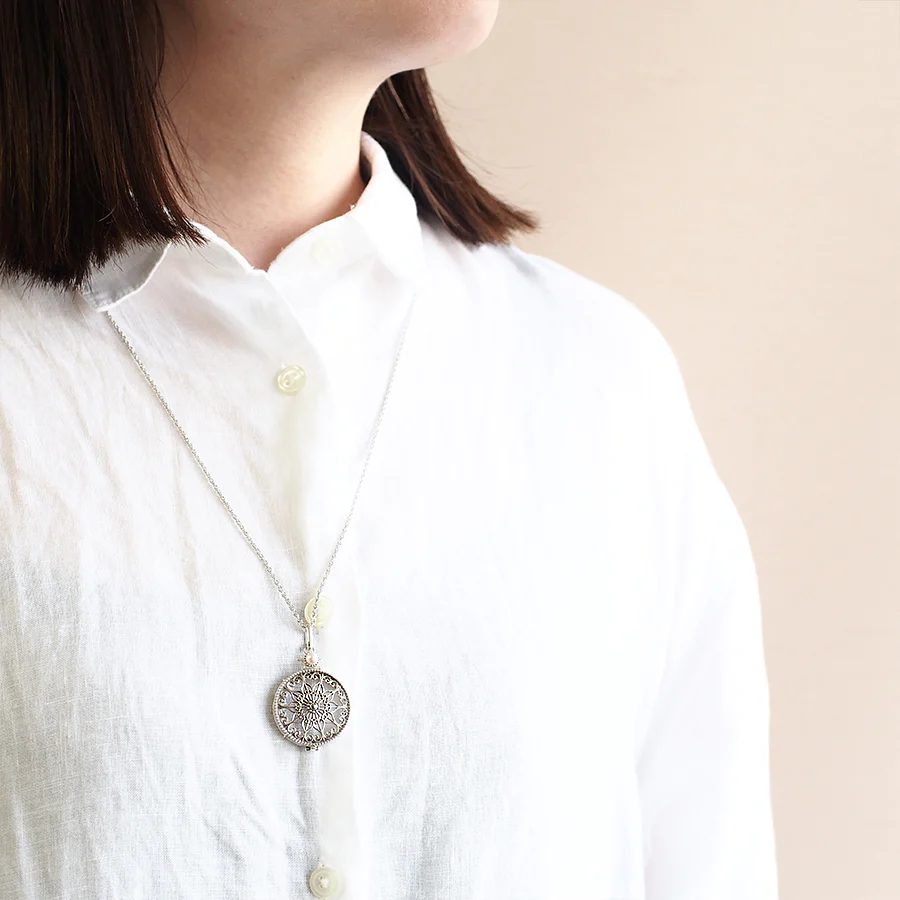 【Made in Japan】 SV系列 珍珠與馬卡石 古董蕾絲 放大鏡吊墜