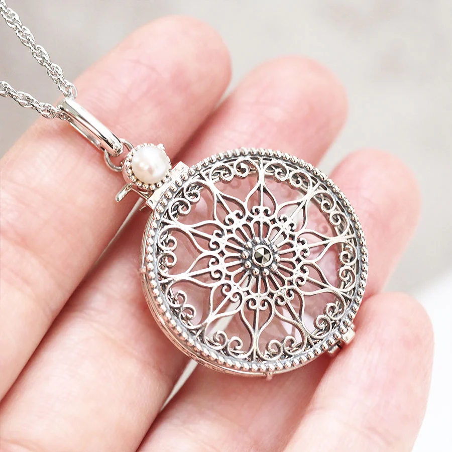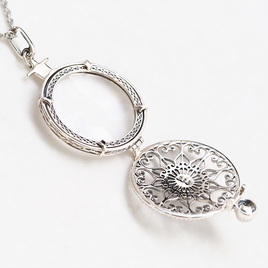 像蕾絲般嘅開孔金屬地金非常靚嘅放大鏡頸鏈吊墜。