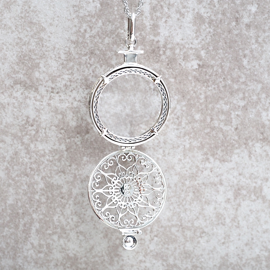 呢個吊墜唔單止時尚,亦都非常實用,可以用嚟放大睇購物嘅價錢標籤、旅行時檢查車票、睇餐牌或者劇院節目單,功能性好強。
