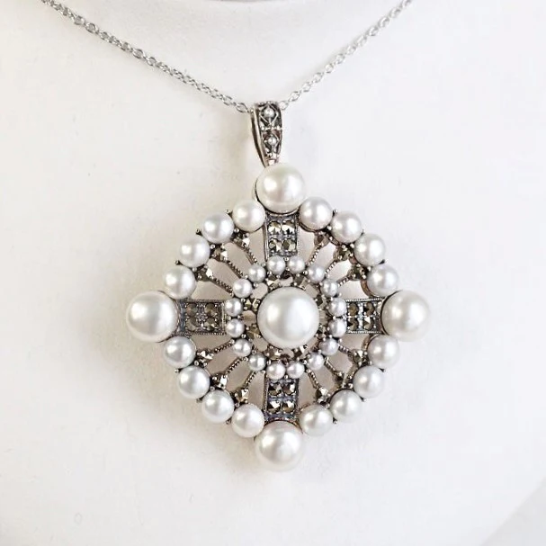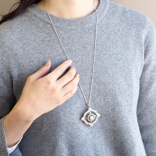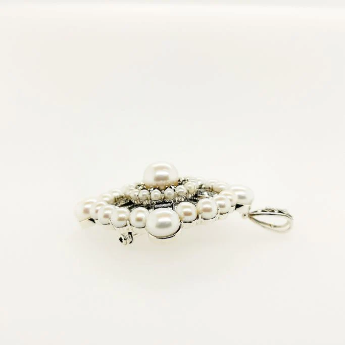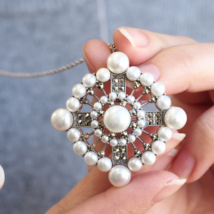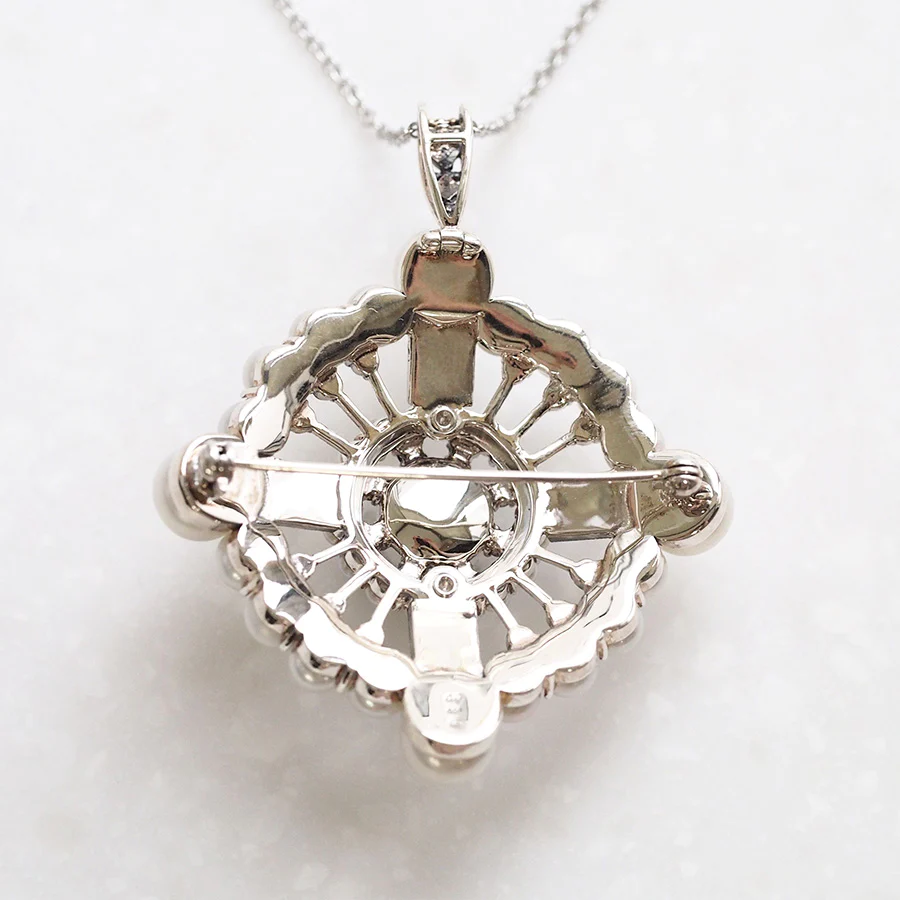 以令人聯想到裝飾藝術風格的大膽摩登設計,加上淡水珍珠的柔和光澤,打造出既優雅又充滿氣派的胸針。它體積感十足,散發貴族般的高雅氣質,是為時尚造型增添亮點的完美選擇。 商品管理番号 204C0404 サイズ 約55×46mm 素材 SV925 Marcasite、Pearl 注意事項 ※請注意,由於使用天然石材,因此可能存在個體差異、天然裂縫和內含物,並且實際天然石材的顏色可能會因瀏覽器而異。 ※不含鏈條 請按讚:喜歡 正在載入...