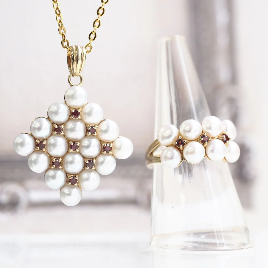 用好似士多啤梨嘅石榴石夾喺如忌廉般柔滑嘅乳白色珍珠入面嘅設計好浪漫,每次照鏡都會忍唔住微笑♪