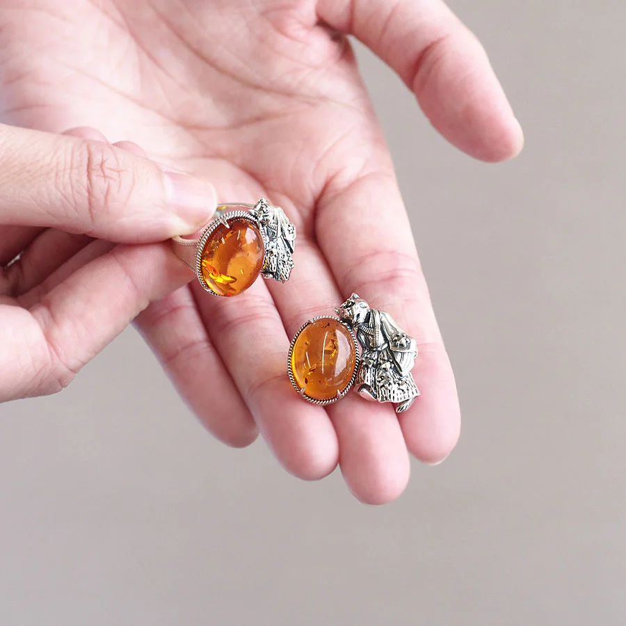 呢啲擬人化貓咪細膩又立體,佢哋活潑嘅踢鞠姿態好可愛,而且雖然係貓,但呢啲穿著和服嘅貓咪配合琥珀色調,成為咗一款成年人都易於佩戴嘅主題珠寶。
