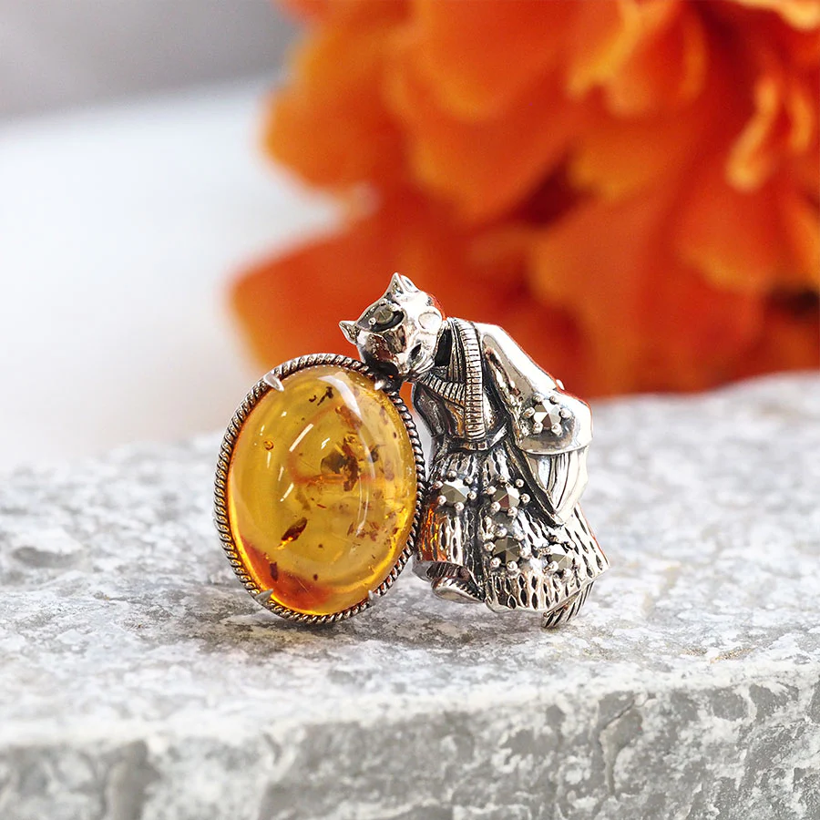 呢啲擬人化貓咪細膩又立體,佢哋活潑嘅踢鞠姿態好可愛,而且雖然係貓,但呢啲穿著和服嘅貓咪配合琥珀色調,成為咗一款成年人都易於佩戴嘅主題珠寶。
