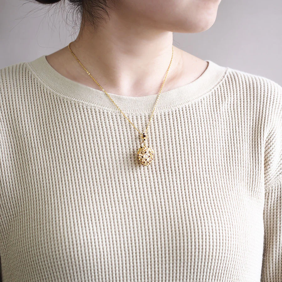 立體嘅士多啤梨圖案入面擺咗一粒會擺動嘅大珍珠♪