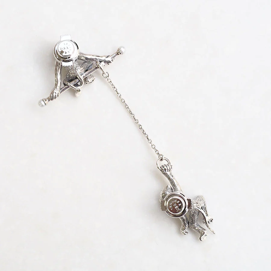 【Made in Japan】 SV系列 紅寶石同珍珠 仲良好小猴子雙層摺針胸針