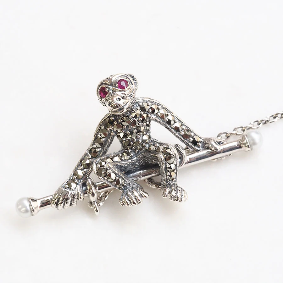 🧧🐒 2025–2026「紅寶眼雙猴吊鏈胸針」最兇最靈猴王情侶款 (925銀+4粒天然紅寶石Ruby眼睛+滿身馬克賽石+一隻坐桿一隻吊鏈真的會晃!+上下各一顆日本Akoya珍珠=一戴直接變齊天大聖他女朋友) 「別人戴胸針是貴婦,妳戴這隻是整條街最兇的猴王妃!一晃一晃兩隻紅眼小猴直接幫你把2025犯太歲的霉運甩飛八百里!」 五行屬:火+最強金+動能風,主打:動則發財、動則脫單、動則小人自動滾、屬猴本命年直接變大聖附體