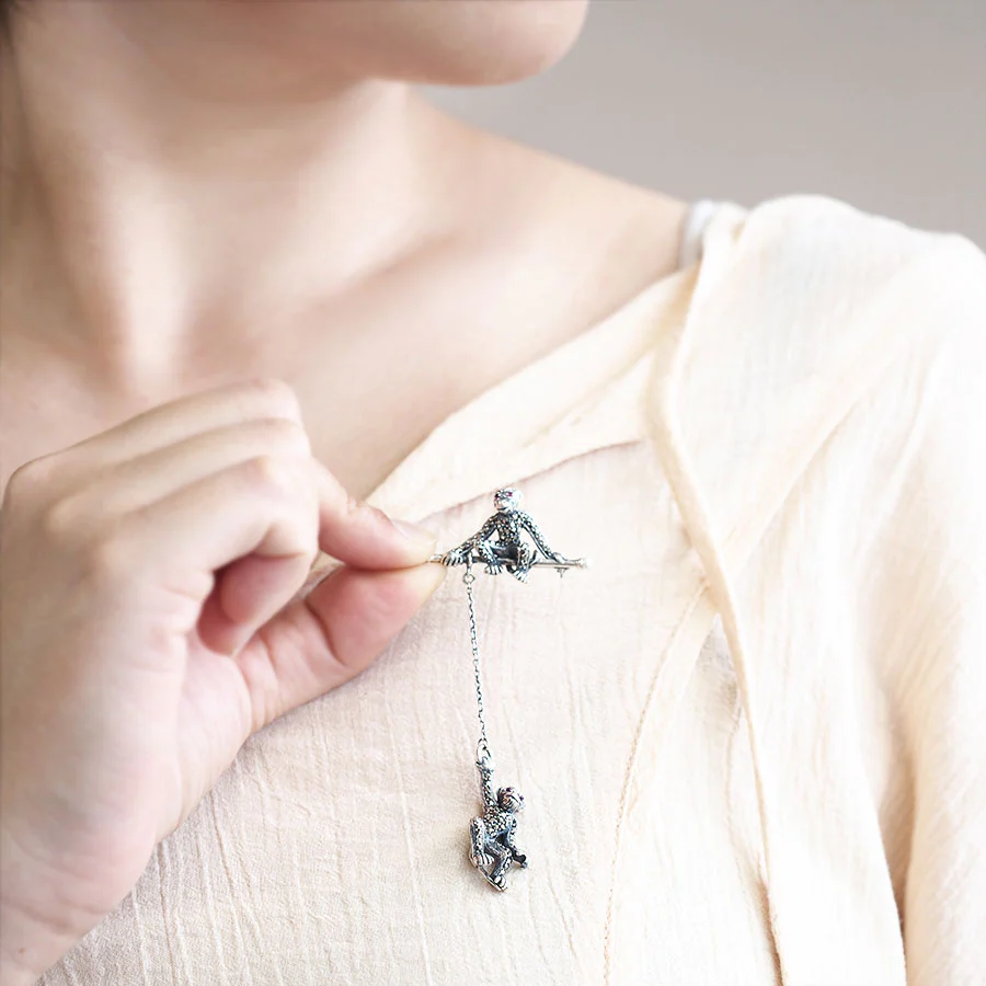 呢件係一件好特別嘅胸針,重現咗兩隻小猴仔親密玩耍嘅樣子。