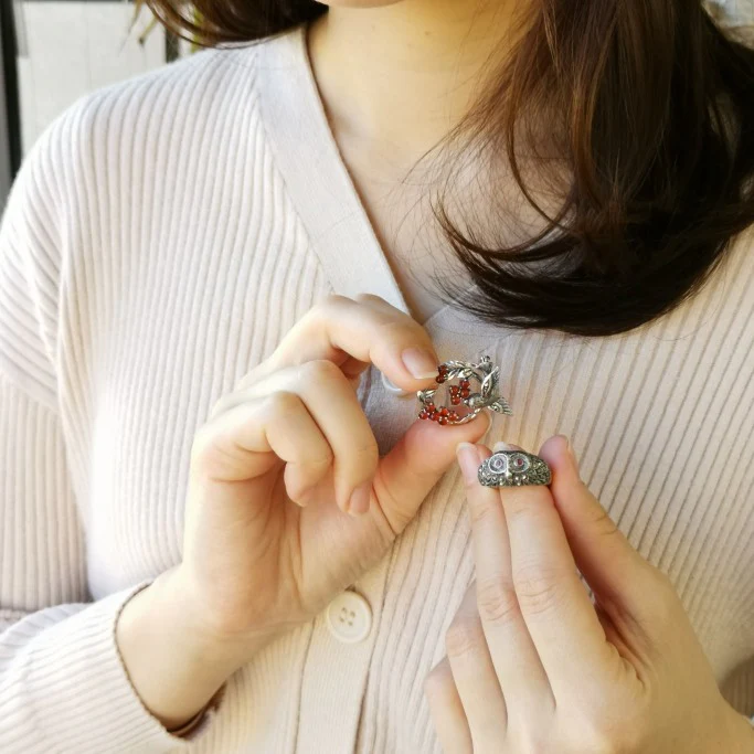 【Made in Japan】 SV系列 紅寶石同馬塞克石 貓頭鷹 戒指