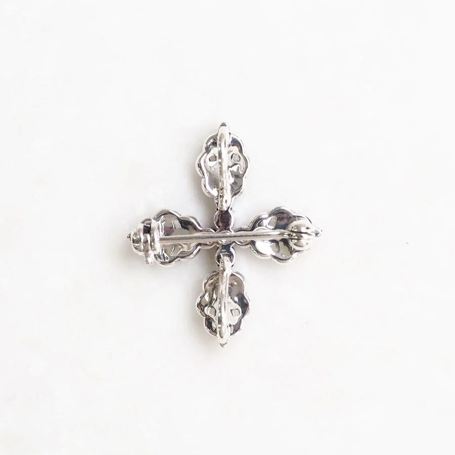 喺古董首飾入面,好受歡迎嘅十字架圖案胸針同吊墜頭,配上閃亮鮮豔嘅紅寶石。地金部分用帶有珠飾嘅葉子圖案圍住,營造出古典同高貴嘅氣息♪
