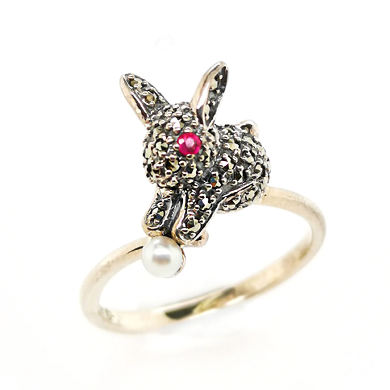 呢款戒指用細小珍珠設計咗雪兔同雪玩耍嘅樣子。 雪兔嘅形態全都用細小嘅馬卡石仔精緻打造。 眼睛用咗紅寶石鮮艷嘅色彩作點綴,令雪兔嘅可愛更突出。 商品管理番号 204R0501-RB サイズ 約14×9mm 素材 SV925 Ruby、Marcasite、Pearl 注意事項 ※請注意,由於使用天然石材,因此可能存在個體差異、天然裂縫和內含物,並且實際天然石材的顏色可能會因瀏覽器而異。 請按讚:喜歡 正在載入... Size #11, #13, #15, #17