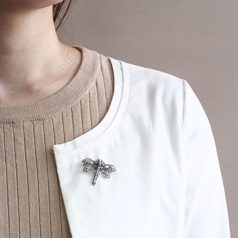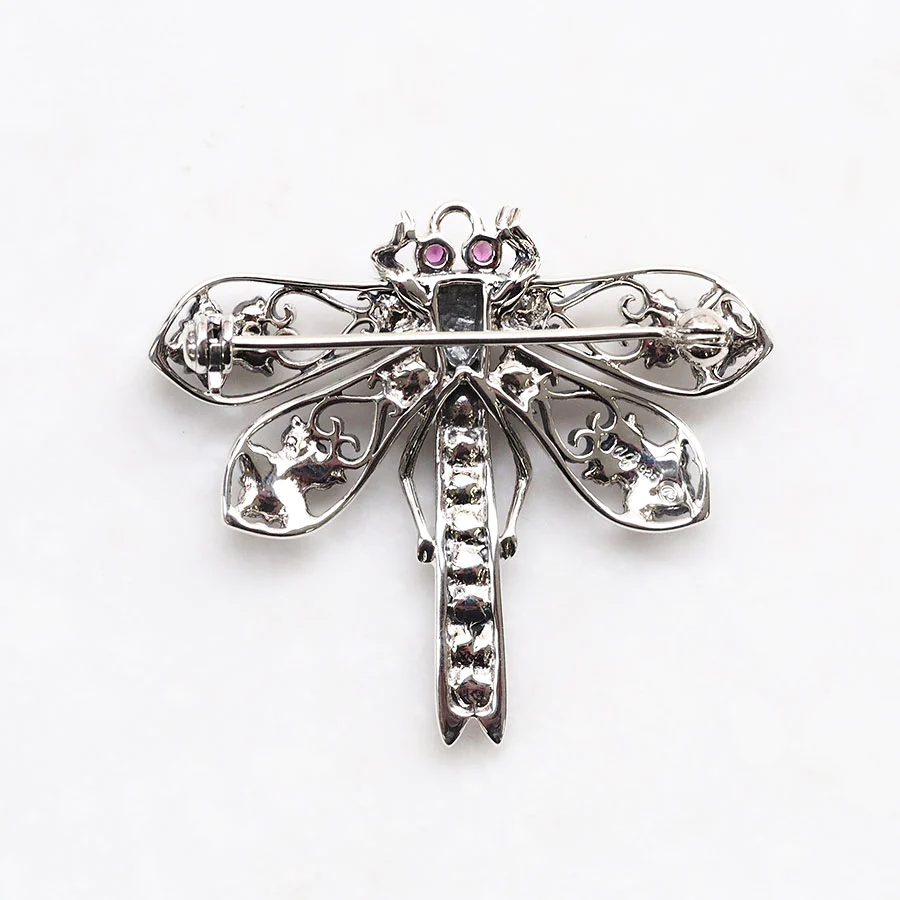 蜻蜓的眼睛鑲嵌了紅寶石,用珍珠再現直直伸展的尾巴和透明閃亮的翅膀,呈現高雅的仕上效果。