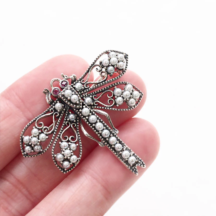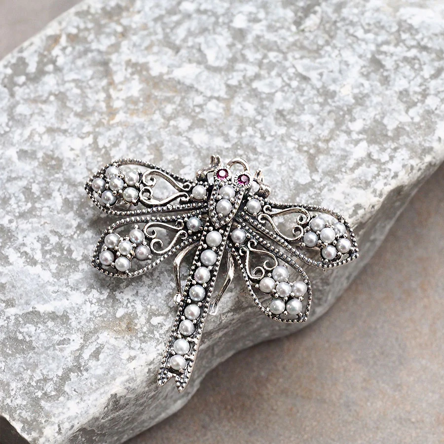【Made in Japan】 SV系列 紅寶石&珍珠 蜻蜓 掛飾胸針