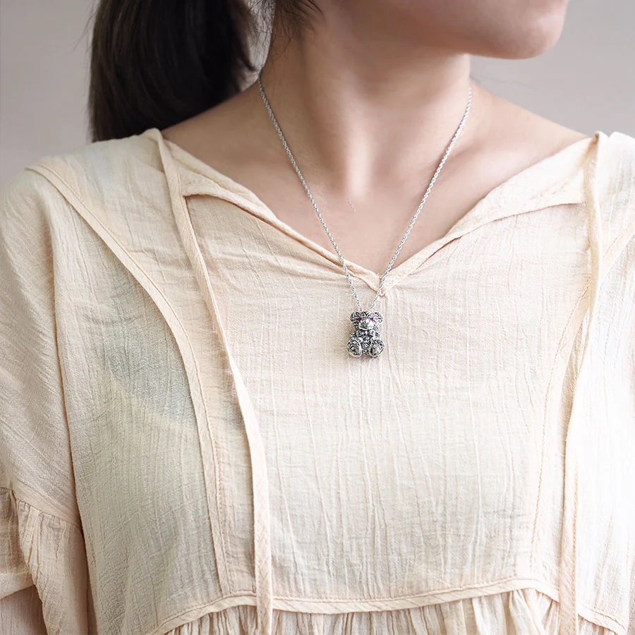 【Made in Japan】 SV系列 紅寶石 打扮泰迪熊 項鍊胸針