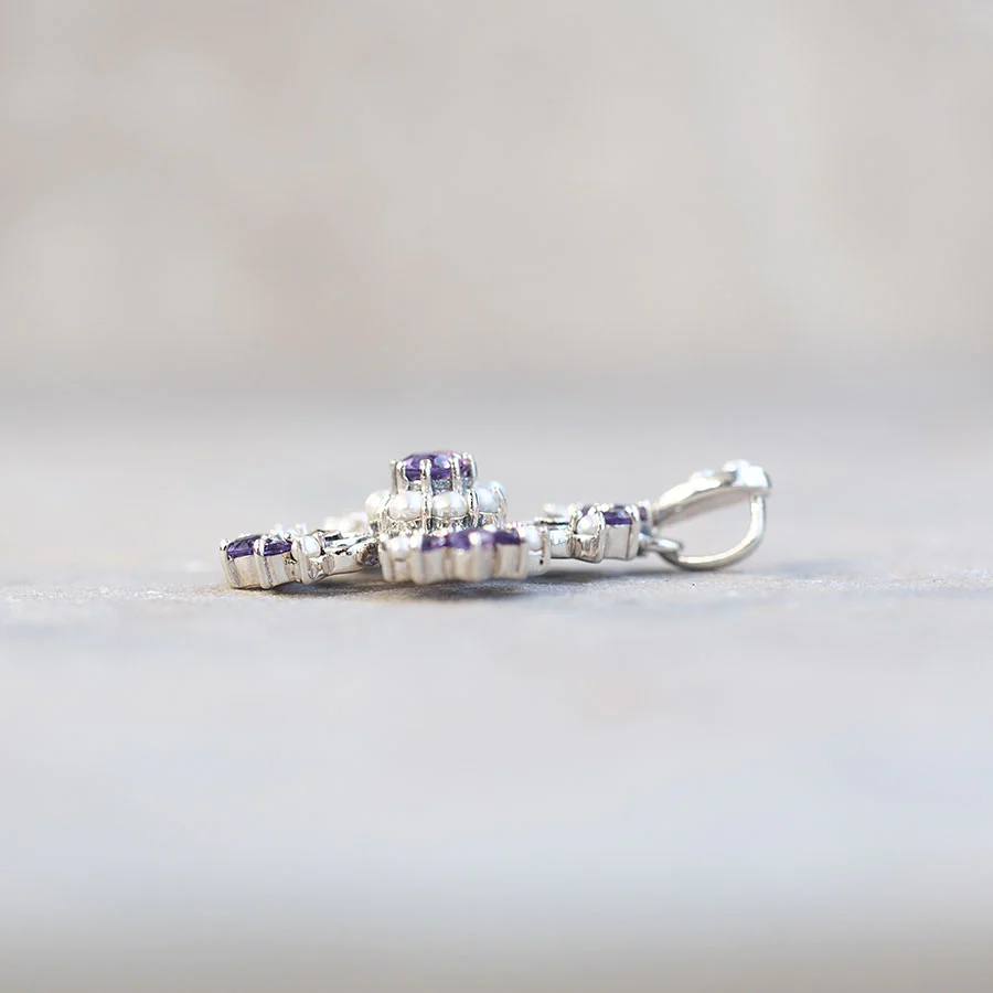 【Made in Japan】 SV系列 紫水晶同珍珠 現代花吊墜