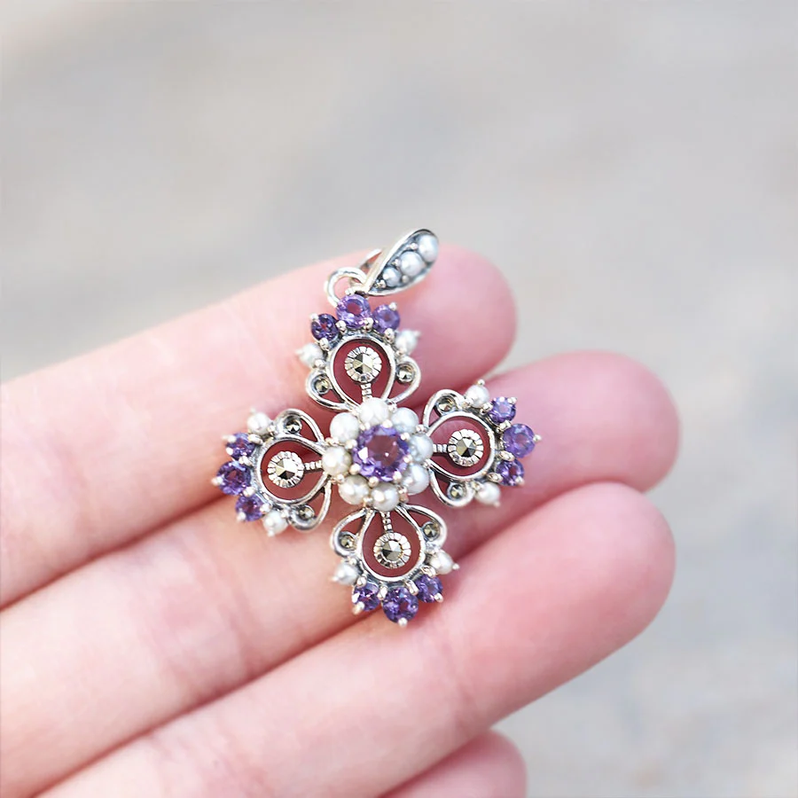 | 素材 | SV925 Amethyst、Marcasite、Pearl |
