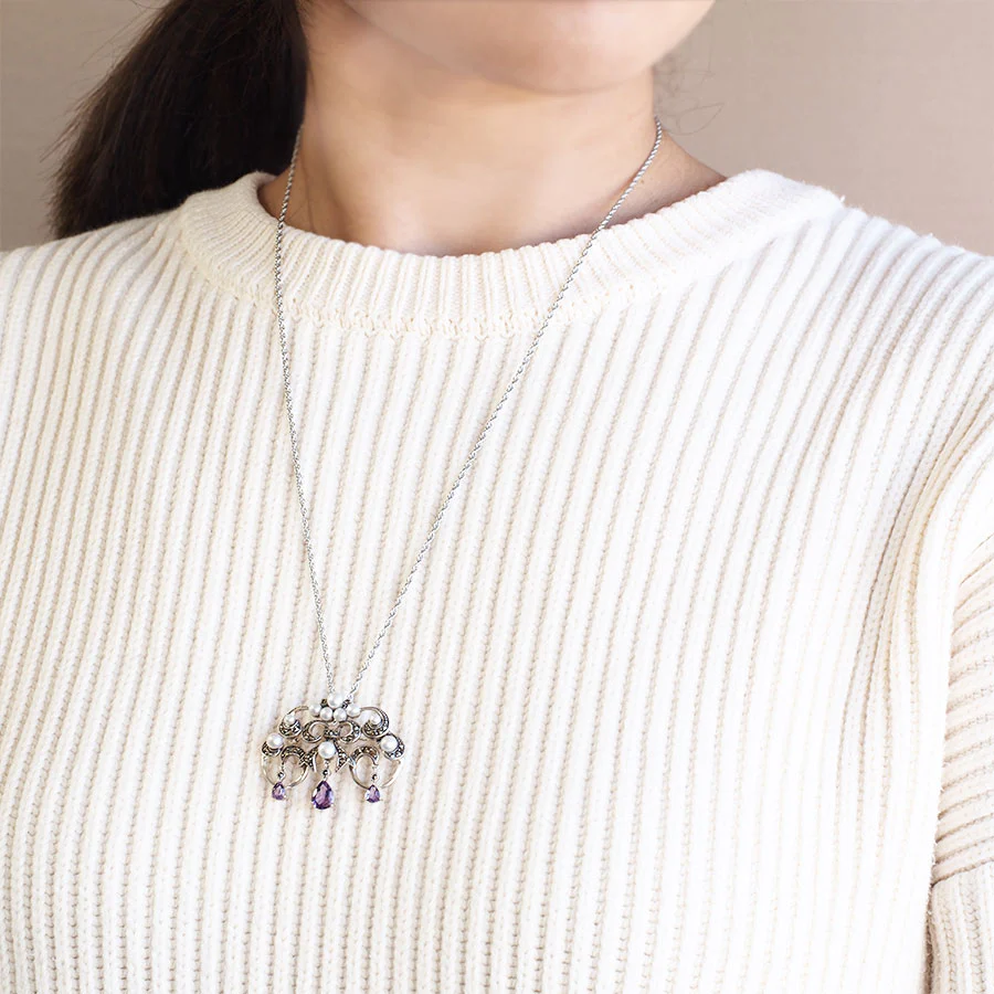【Made in Japan】 SV系列 紫水晶同珍珠 經典吊燈造型胸針/吊墜