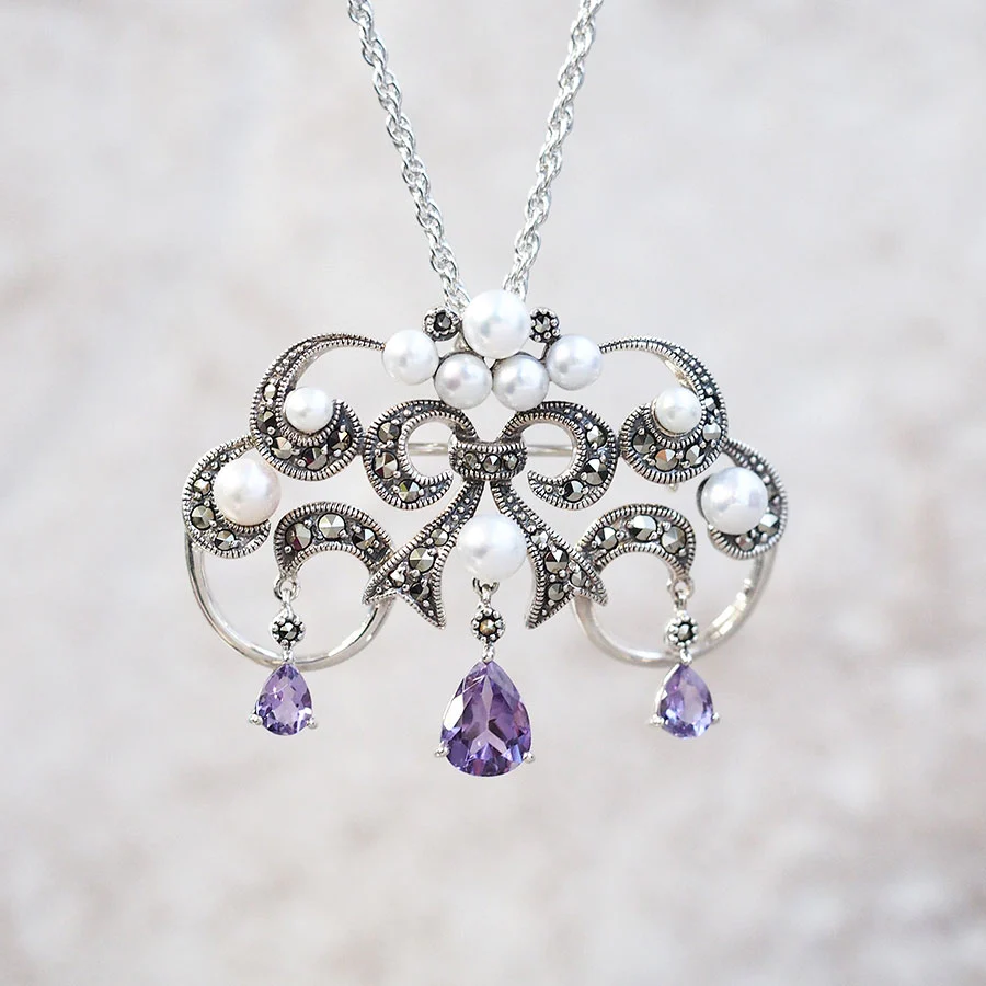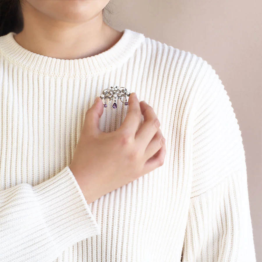 【Made in Japan】 SV系列 紫水晶同珍珠 經典吊燈造型胸針/吊墜