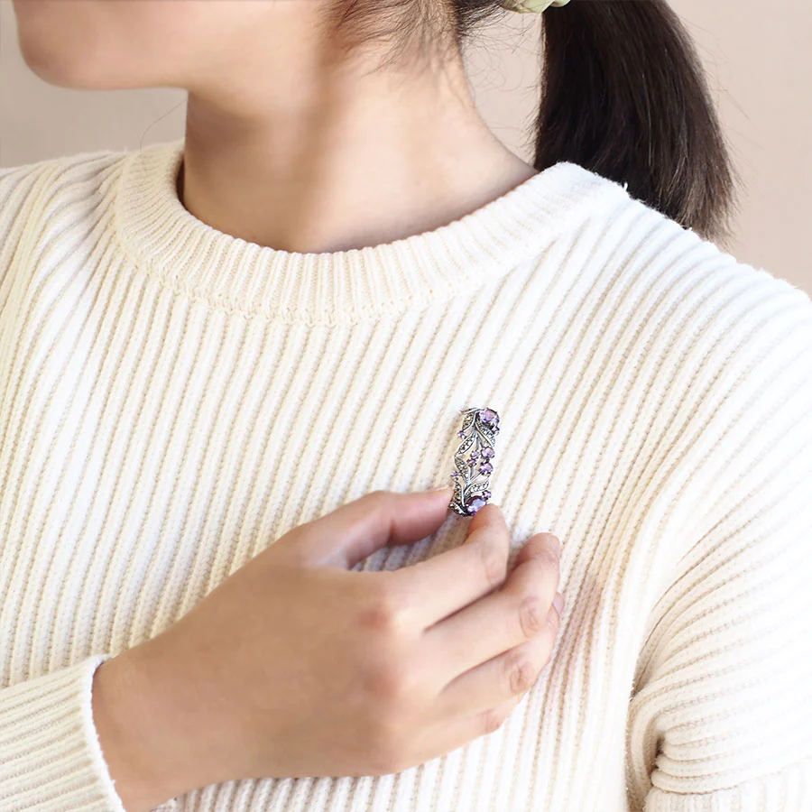 大小不一的圓形切割紫水晶散發出耀眼光芒,令人陶醉的橫向設計美麗的胸針♪