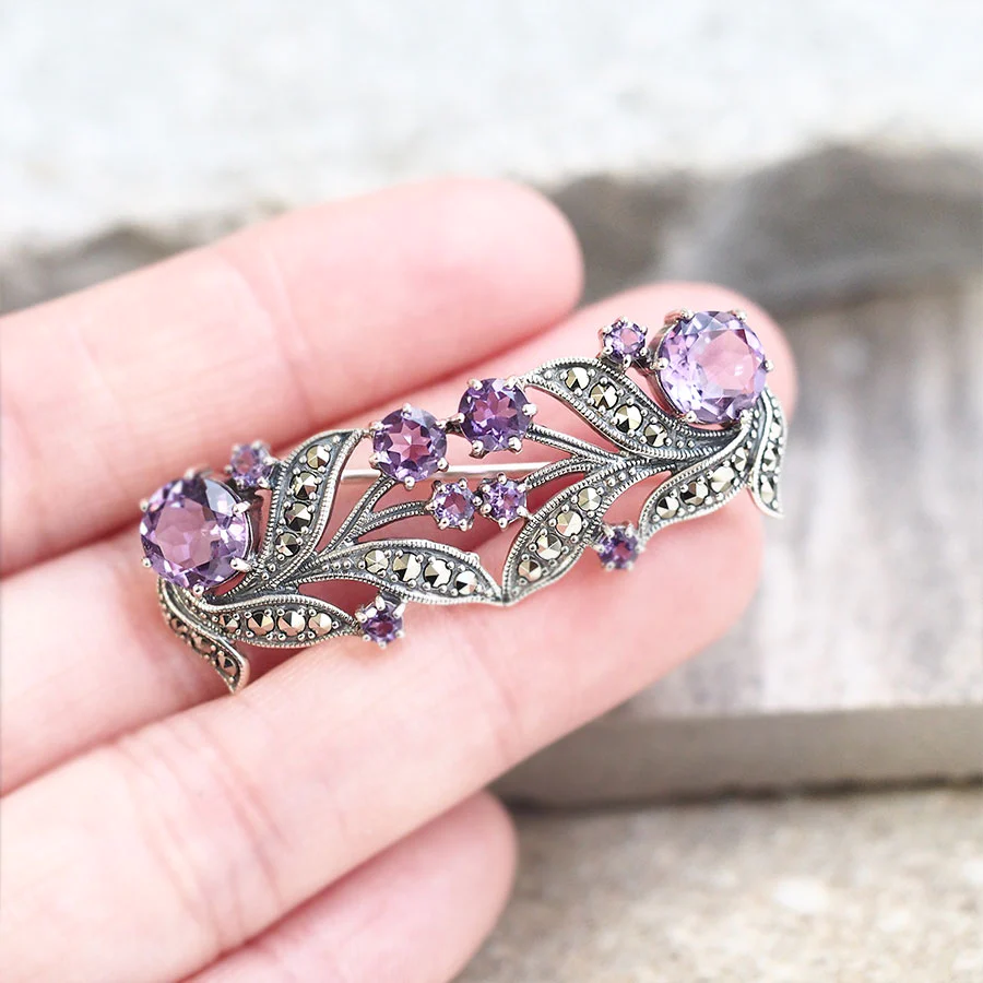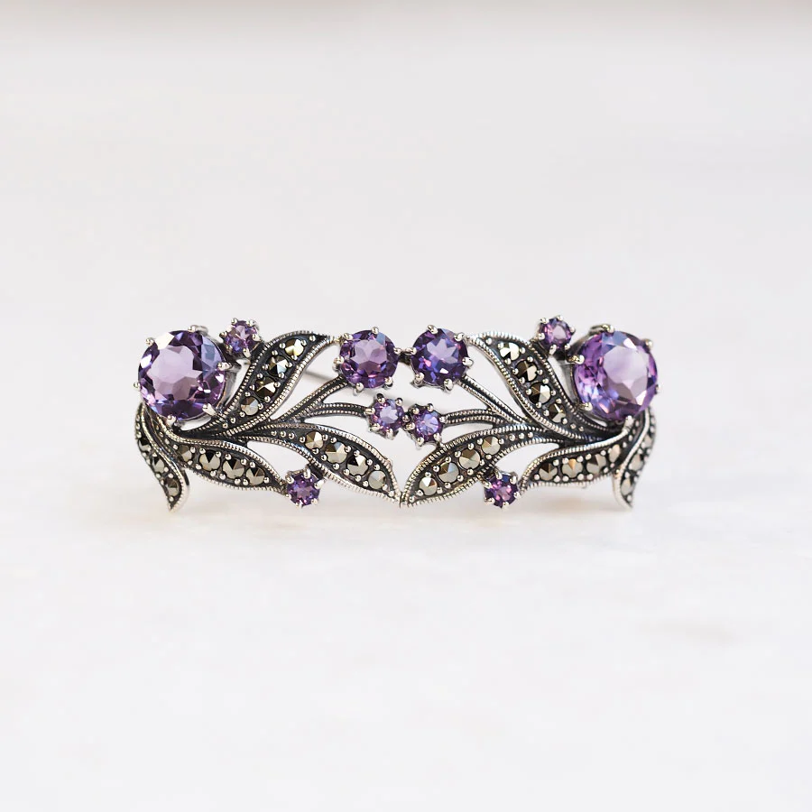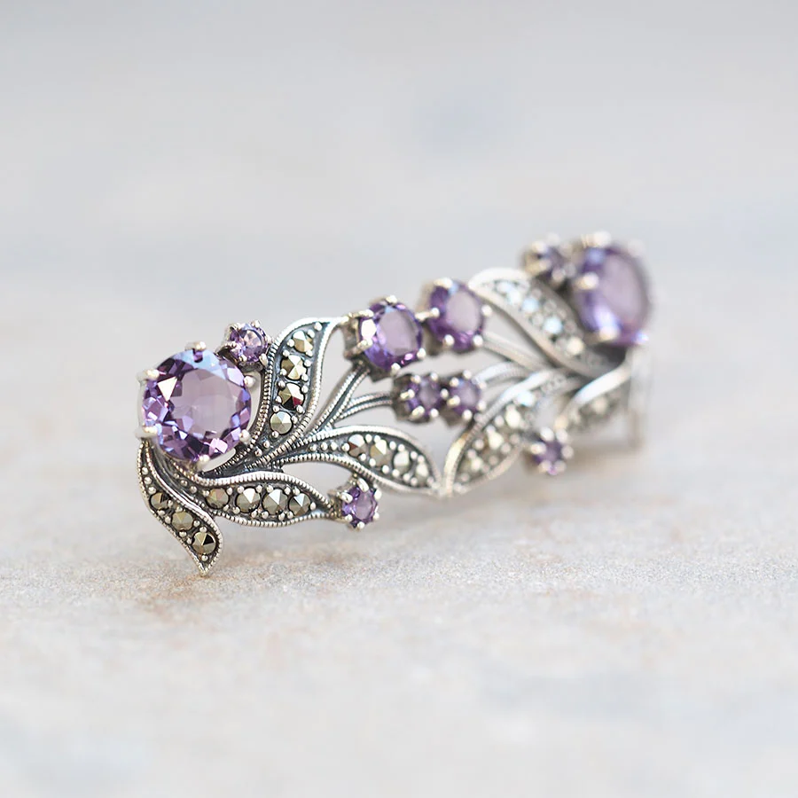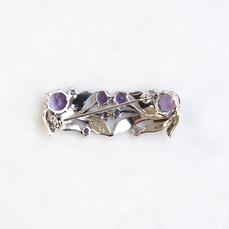 大小不一的圓形切割紫水晶散發出耀眼光芒,令人陶醉的橫向設計美麗的胸針♪