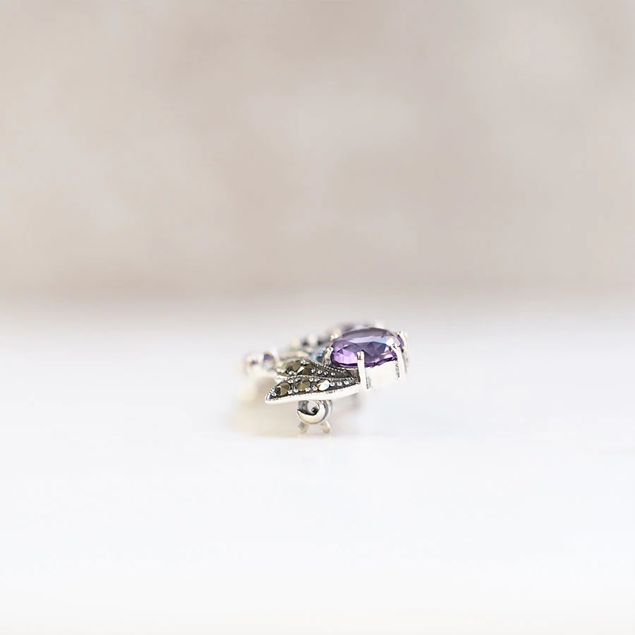 【Made in Japan】 SV系列 紫水晶對稱花朵吊墜/胸針
