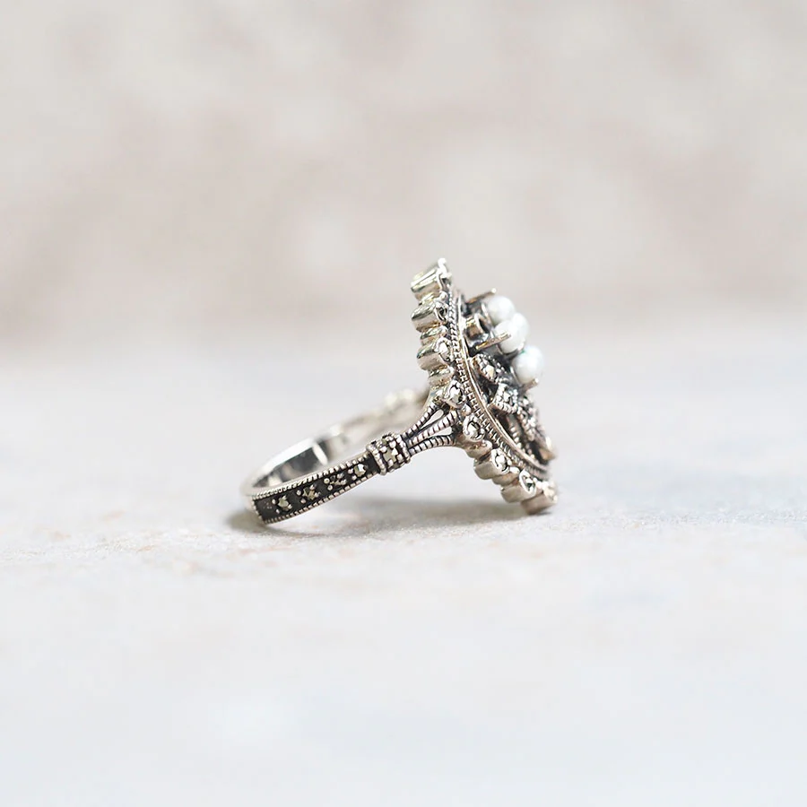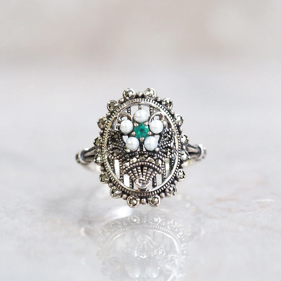 【Made in Japan】 SV系列 綠寶石與珍珠花束戒指