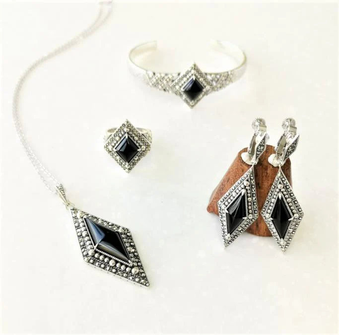 菱形鋒利而清爽嘅設計,配埋縞瑪瑙嘅現代系列戒指。 呢個系列名為Granie,靈感係來自現今意大利所在嘅古老伊特魯里亞出土嘅珠寶。 琉金細工係用無數細小嘅珠飾裝飾,稱為granuation,喺現代甚至話難以重現。 金屬部分刻咗植物紋路,精緻而工藝繁複。 商品管理番号 202R0855-ON サイズ 約25×20mm 素材 SV925 Onyx、Marcasite 注意事項 ※請注意,由於使用天然石材,因此可能存在個體差異、天然裂縫和內含物,並且實際天然石材的顏色可能會因瀏覽器而異。 請按讚:喜歡 正在載入... Size #11, #13, #15, #17