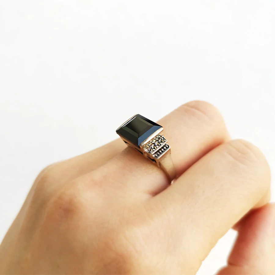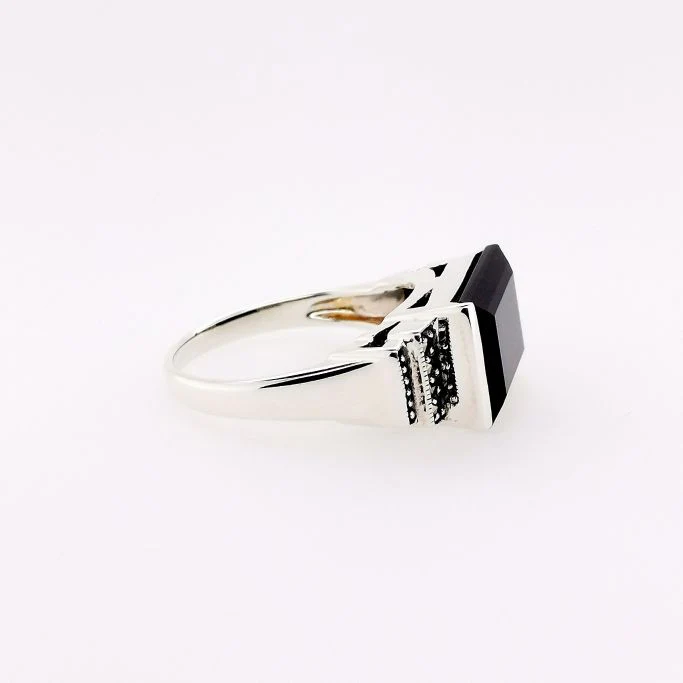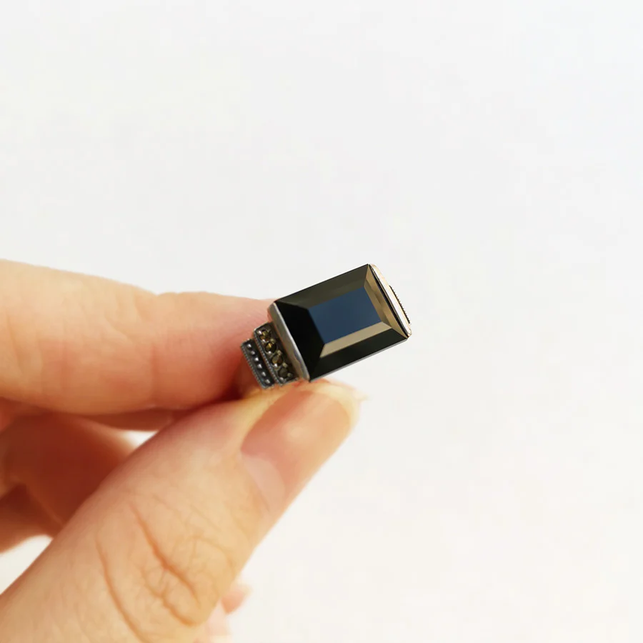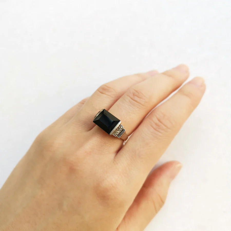 Art Deco 設計嘅縞瑪瑙戒指。