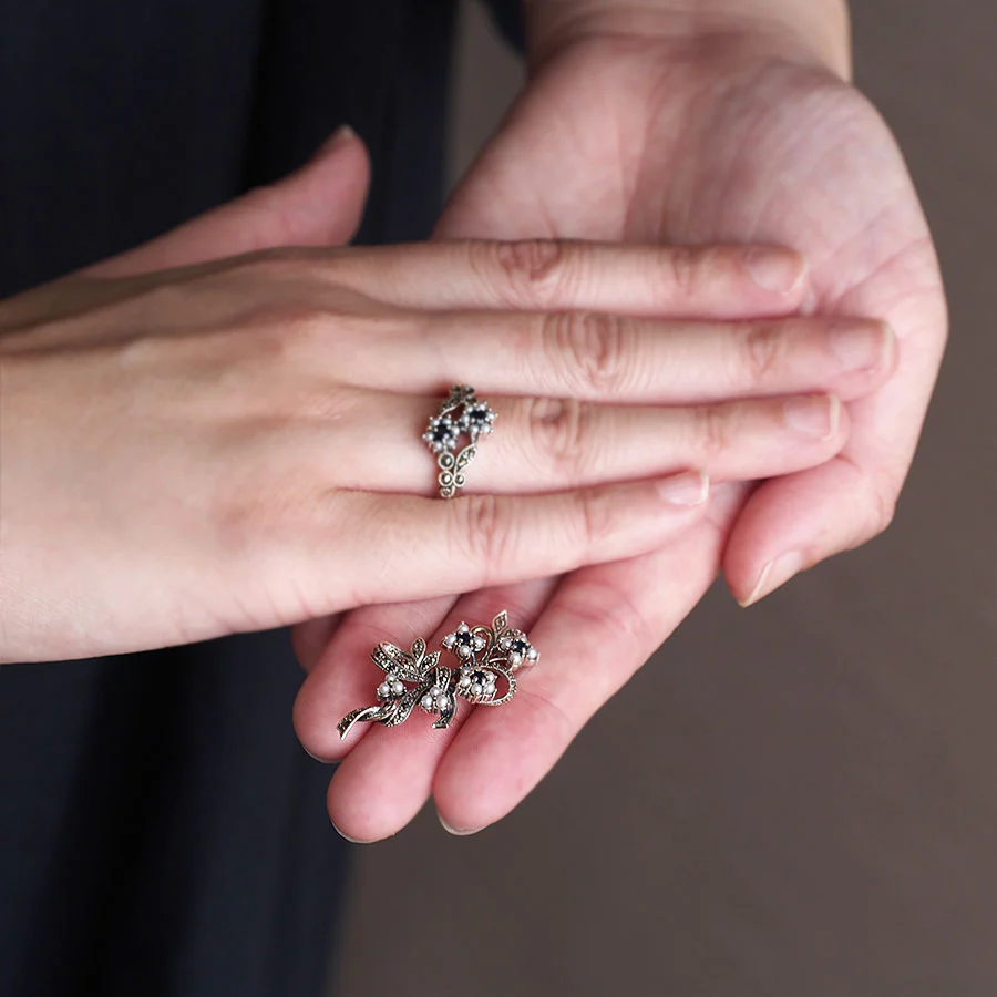| 素材 | SV925 Sapphire、Marcasite、Pearl |