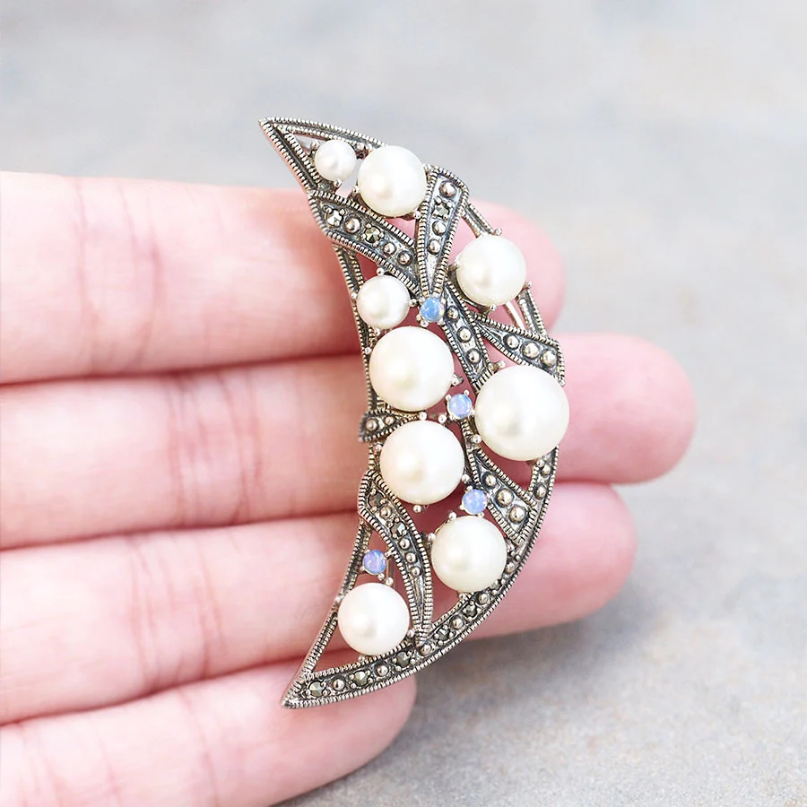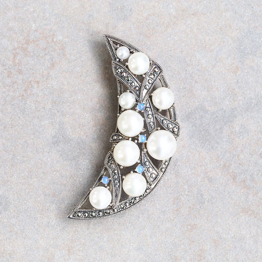 【Made in Japan】 SV系列 蛋白石&珍珠 三日月 吊墜別針