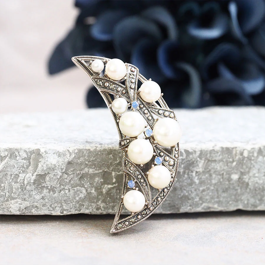 喺豐滿嘅彎月上,太陽嘅光線反射出淡淡嘅光芒……咁嘅景象浮現出嚟,非常浪漫嘅彎月胸針。