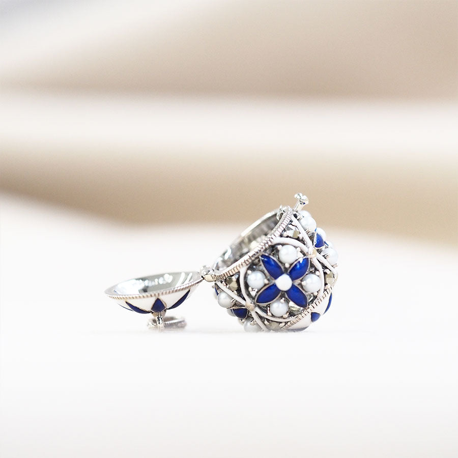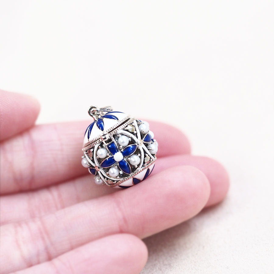 呢款蛋型火箭吊墜,圓滾滾嘅造型好可愛。設計經典簡約,上下都有花嘅圖案,點綴其中嘅小珍珠有立體感,無論從邊個角度睇都超可愛♪ 鮮明嘅藍色同白色配搭,帶嚟清爽嘅感覺。 按壓位有開口位,用手指甲就可以輕鬆打開。 商品管理番号 704P0022-BULW サイズ 約15×15mm 素材 SV925 Marcasite、Pearl 注意事項 ※請注意,由於使用天然石材,因此可能存在個體差異、天然裂縫和內含物,並且實際天然石材的顏色可能會因瀏覽器而異。 ※不含鏈條 請按讚:喜歡 正在載入...