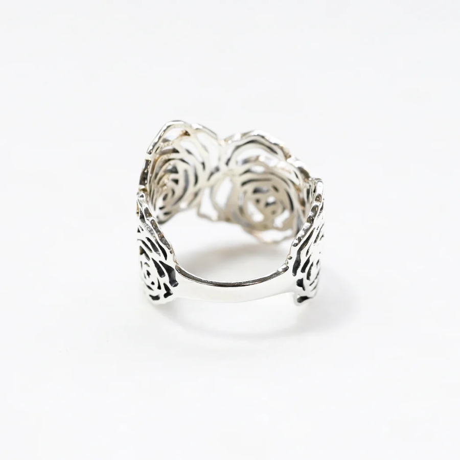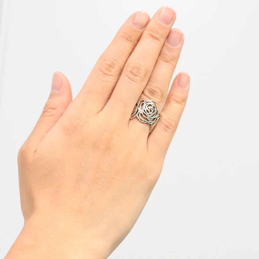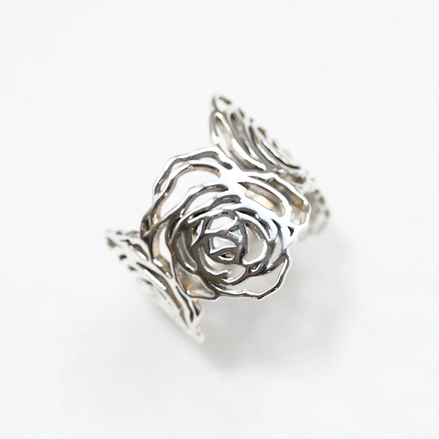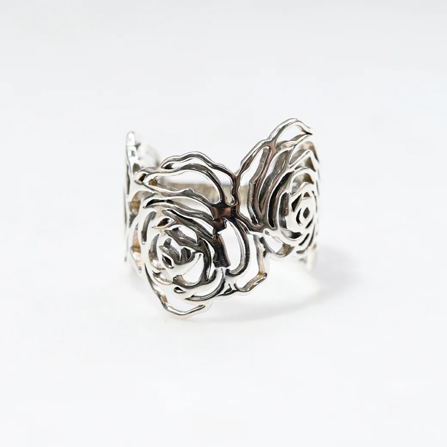 用精緻手法刻畫嘅玫瑰花,用925銀立體呈現嘅戒指。