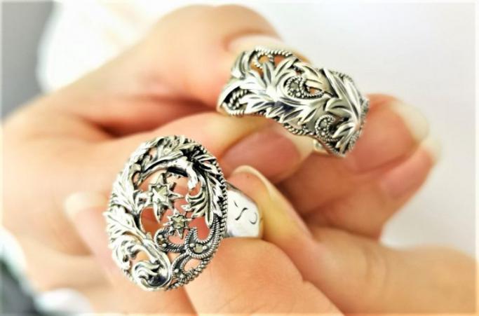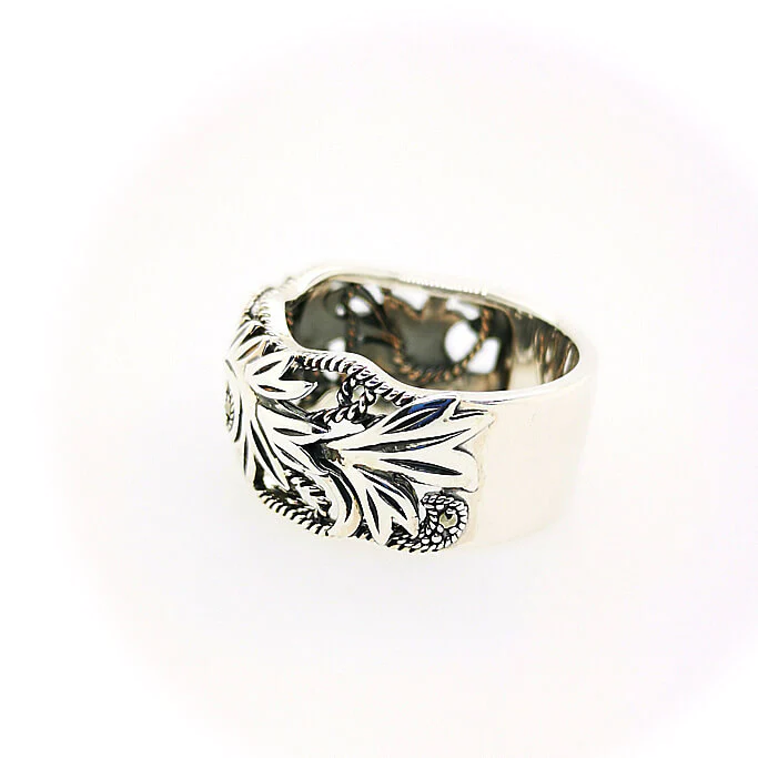 阿甘薩斯收藏 阿甘薩斯係一種原產於地中海沿岸嘅多年生草本植物,喺日本係以同屬嘅哈薩米葉子設計成裝飾圖案。 呢款阿甘薩斯圖案嘅戒指輕巧又易配,適度嘅波浪形設計帶出柔和感。 阿甘薩斯喺古希臘科林斯式建築遺跡都有出現,喺現代都好受歡迎,非常優雅。 商品管理番号 202R0862 サイズ 約10mm 素材 SV925 Marcasite 注意事項 ※請注意,由於使用天然石材,因此可能存在個體差異、天然裂縫和內含物,並且實際天然石材的顏色可能會因瀏覽器而異。 請按讚:喜歡 正在載入... Size #11, #13, #15, #17