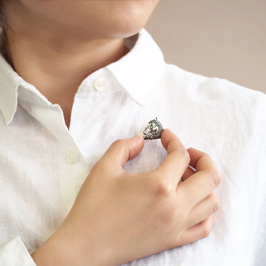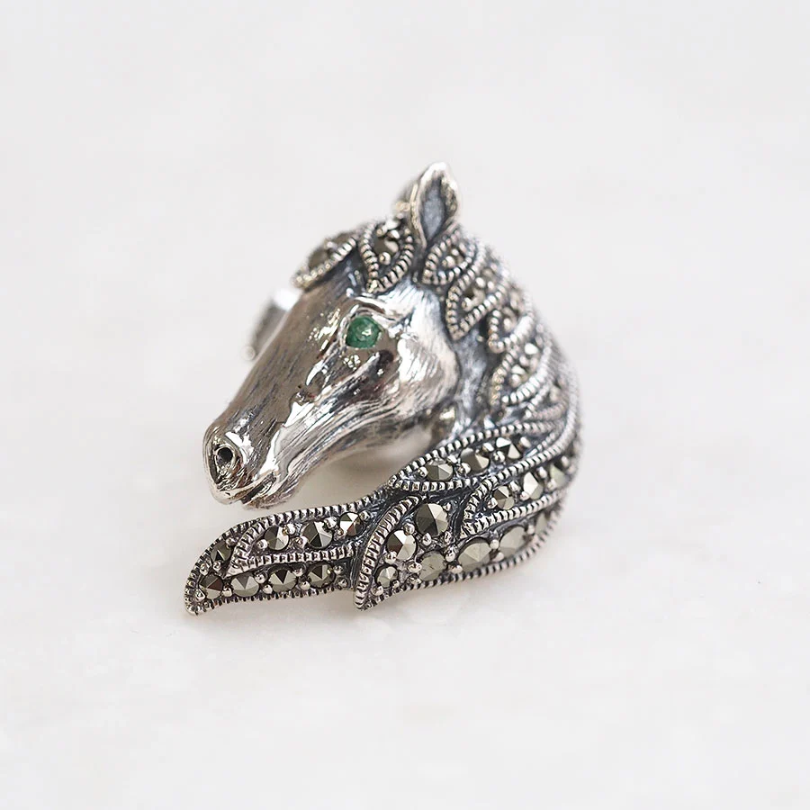 隨風飄揚嘅馬鬃上鑲咗穩重閃亮嘅馬卡石,仲可以襯托祖母綠嘅光彩。