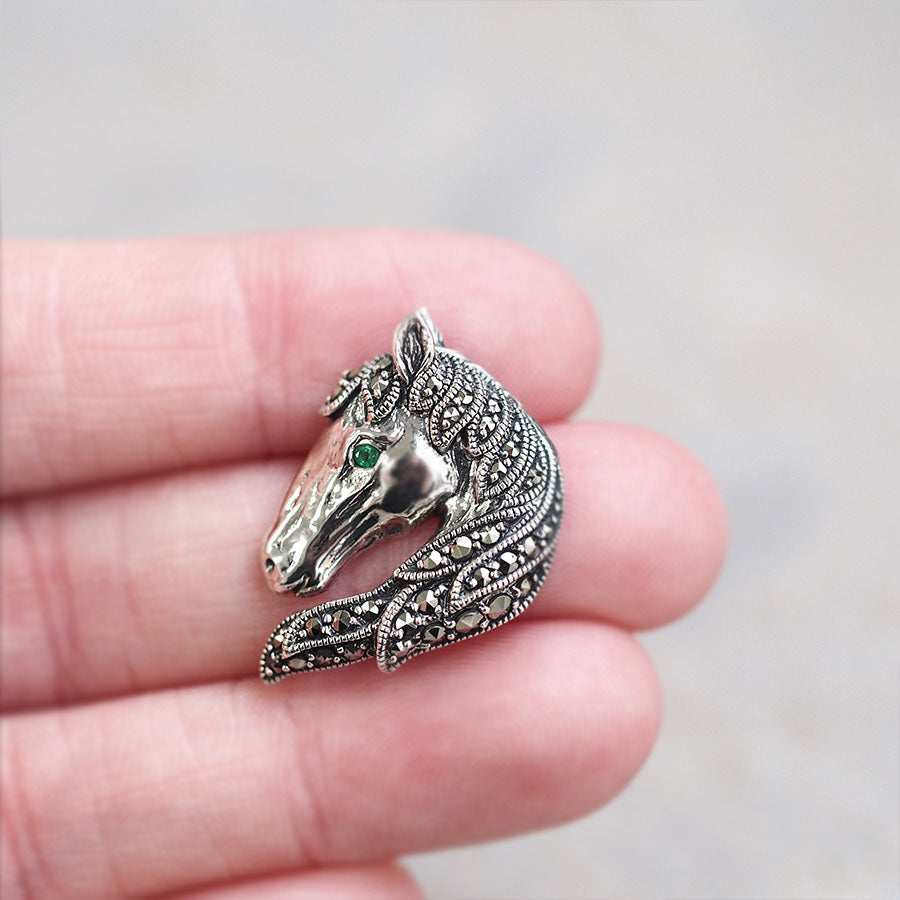 呢個胸針重現咗一匹擁有靚麗端正面貌嘅馬嘅側面輪廓。