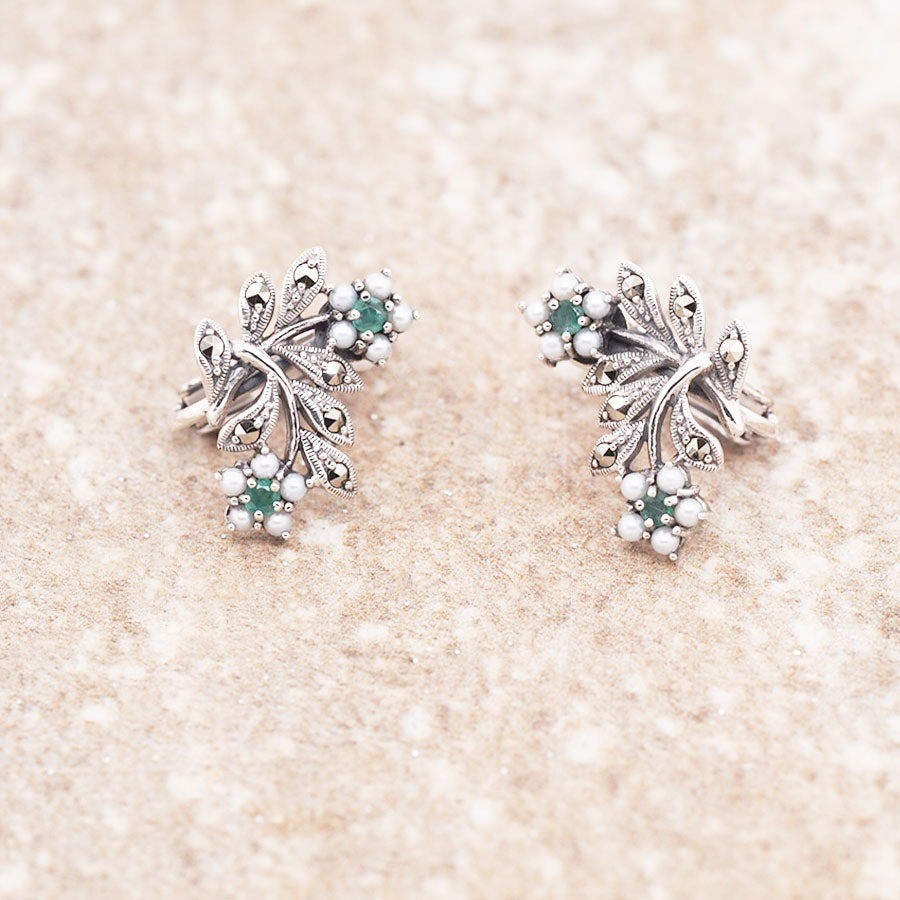 💍 2025-2026 銀飾運勢指南|馬克賽祖母綠珍珠復古花卉耳夾